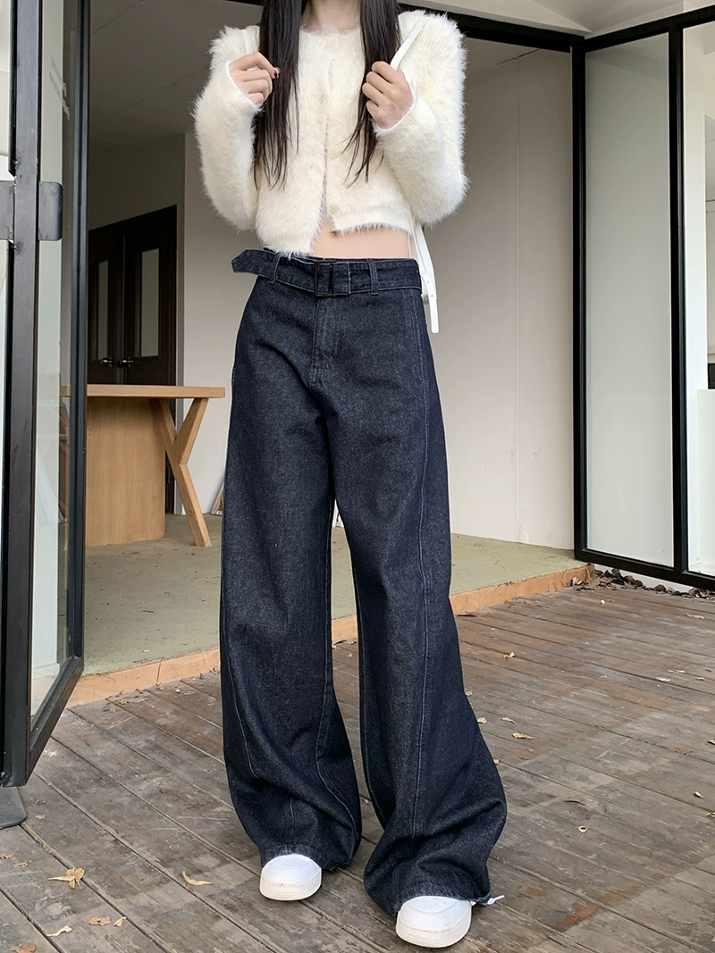 | nameOriginal | Retro blue low-rise straight-leg wide-leg jeans |