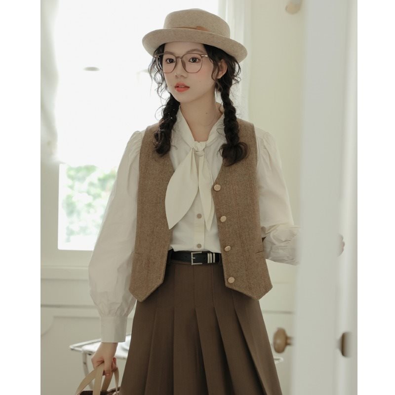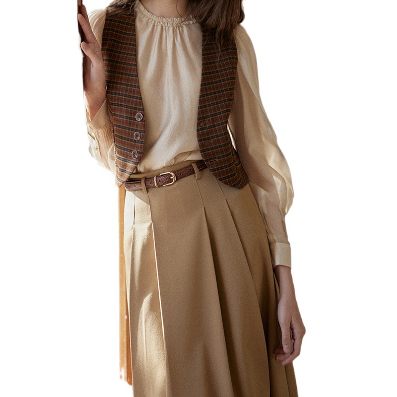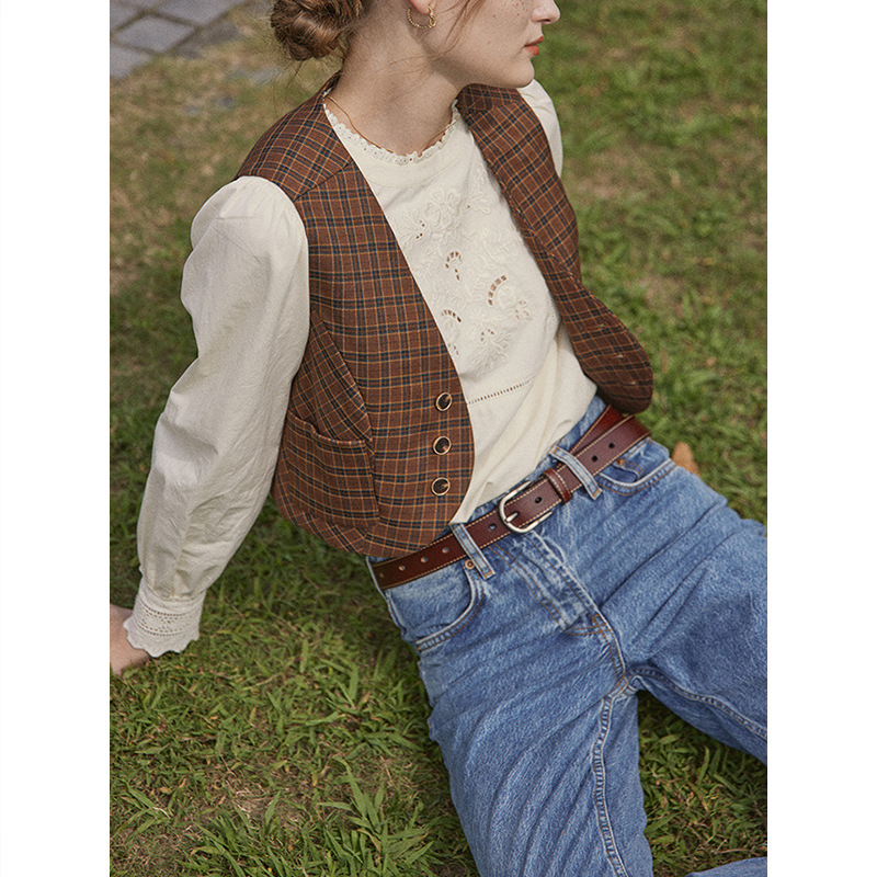 | nameOriginal | Retro British style plaid vest coat for women 2024 Spring French temperament stacked outer wear short waistcoat |