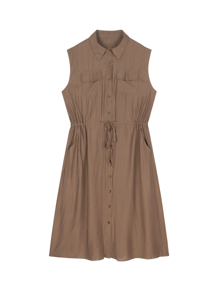 | nameOriginal | Retro brown lapel dress summer sleeveless shirt |