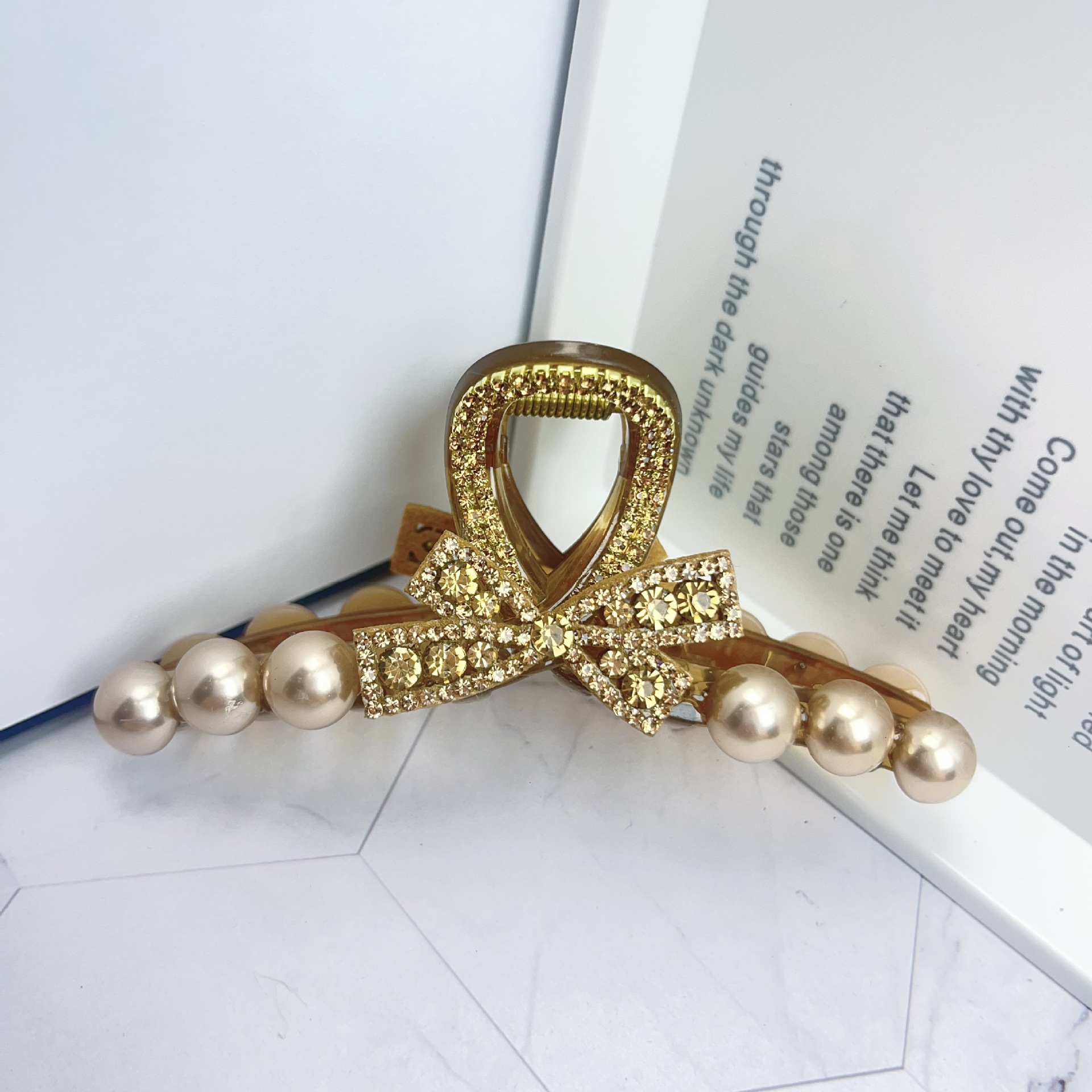 | nameOriginal | Retro brown one-word high-end hairpin with pearls on the back of the head |