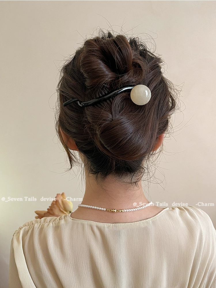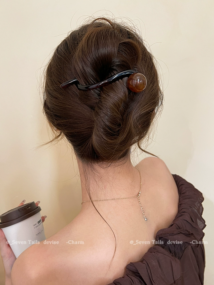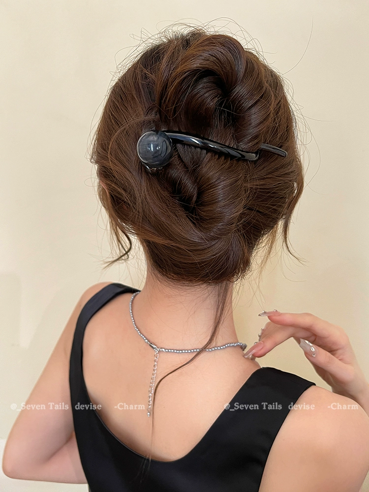 | nameOriginal | Retro brown one-word high-end twisted hair clip with pearls |