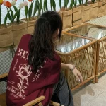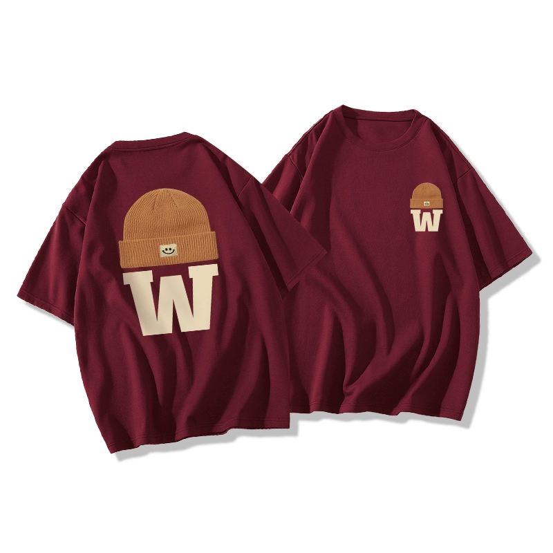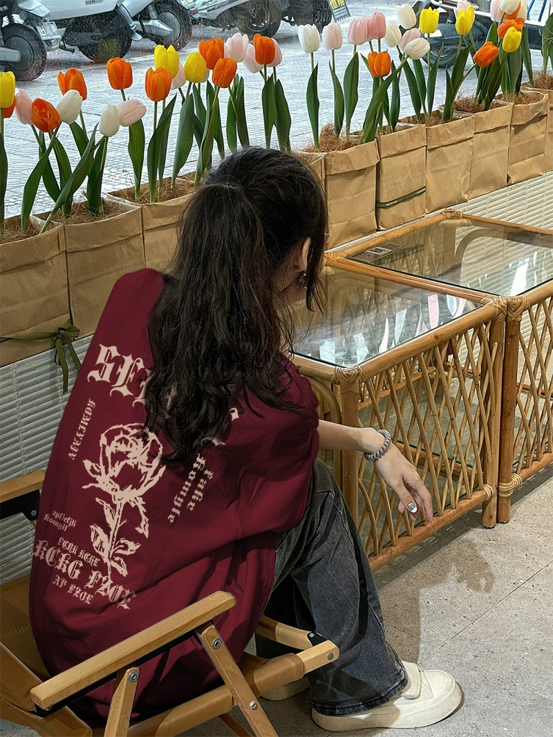 | nameOriginal | Retro burgundy loose cotton top short-sleeved T-shirt |