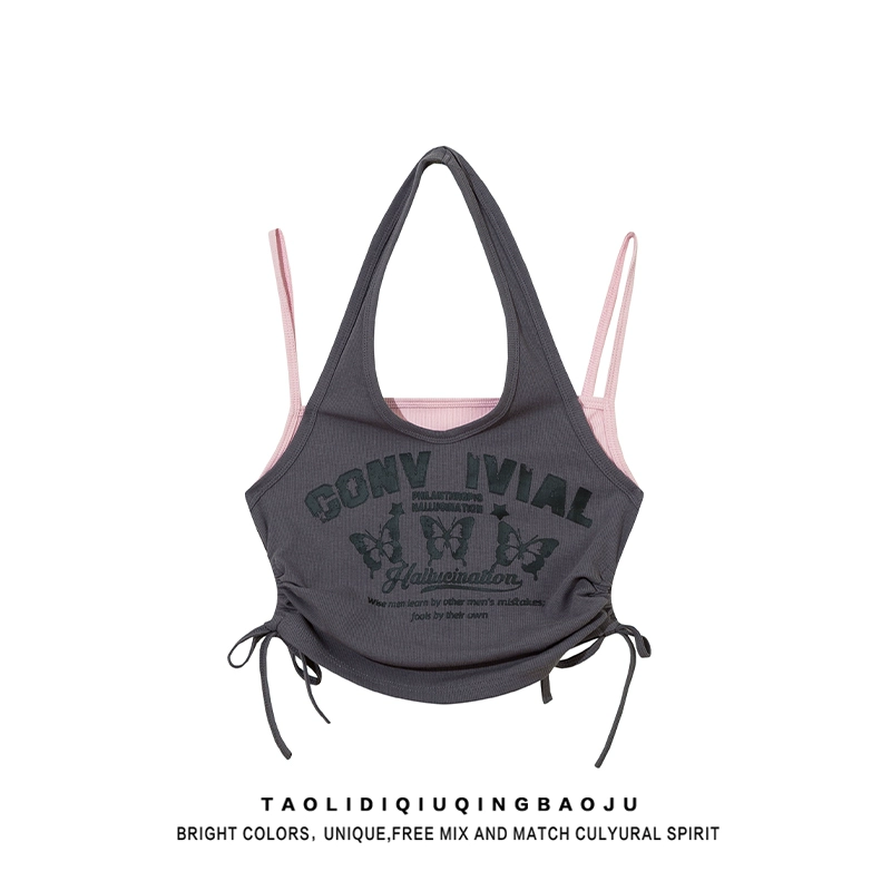 Two pieces of retro butterfly hanging neck slimming and thin waist fake