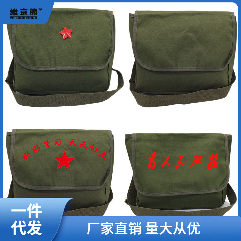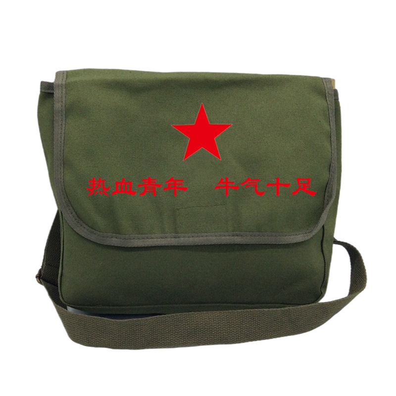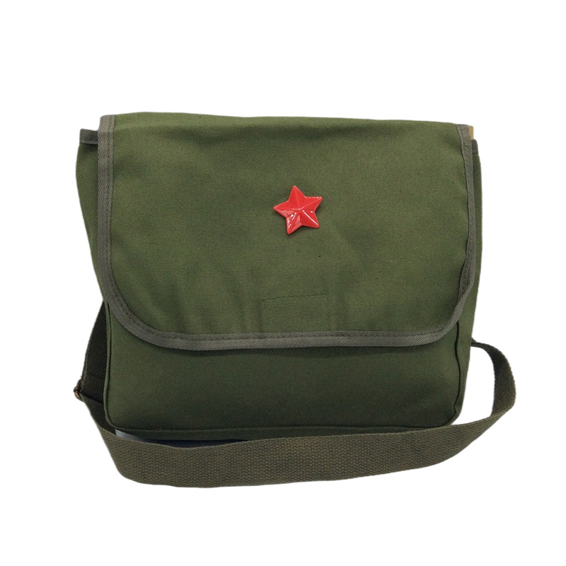 Retro canvas bag men's and women's messenger bag shoulder bag children's old school bag Lei Feng bag five-pointed star bag children's bag