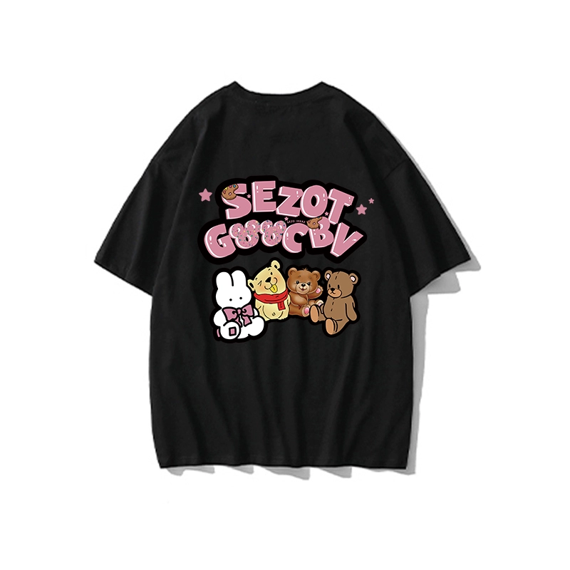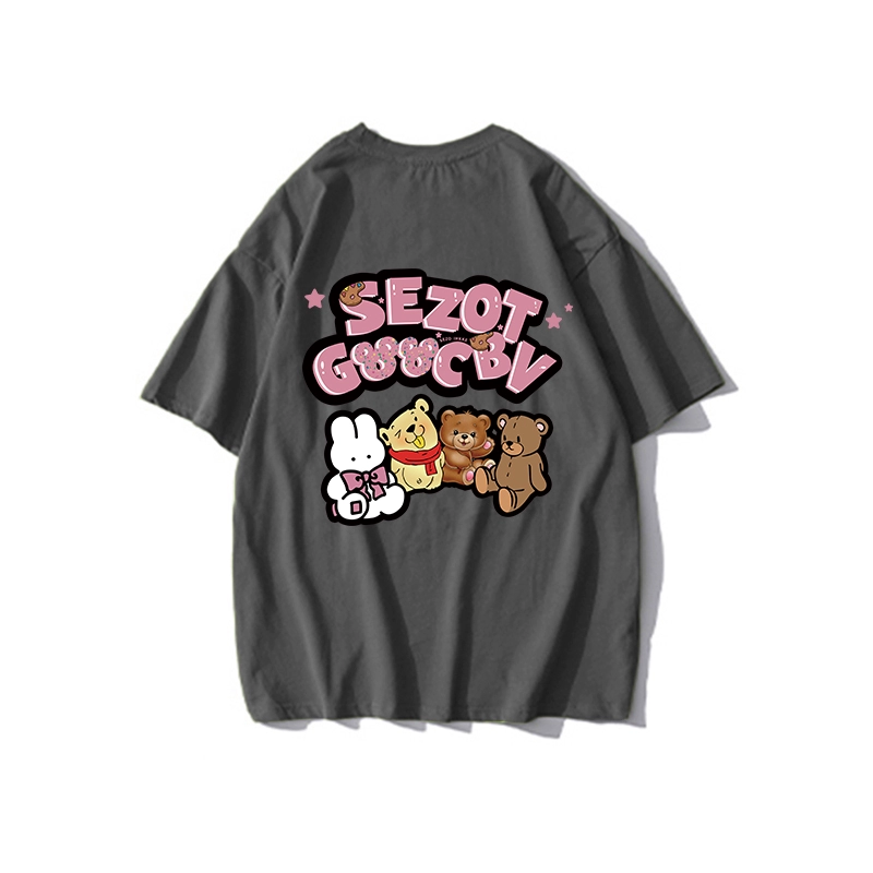 | nameOriginal | Retro cartoon gray short-sleeved slimming flesh-covering T-shirt |