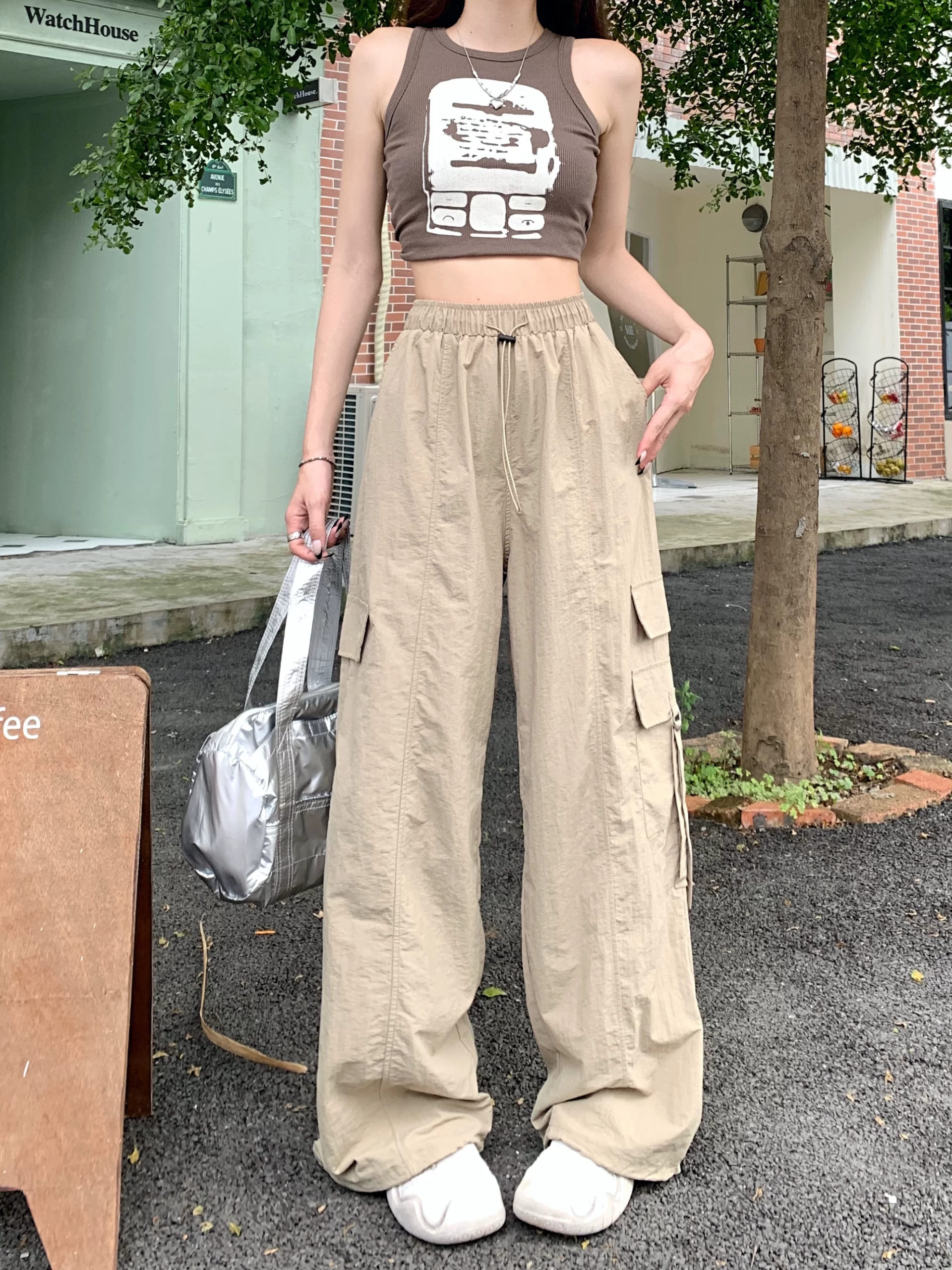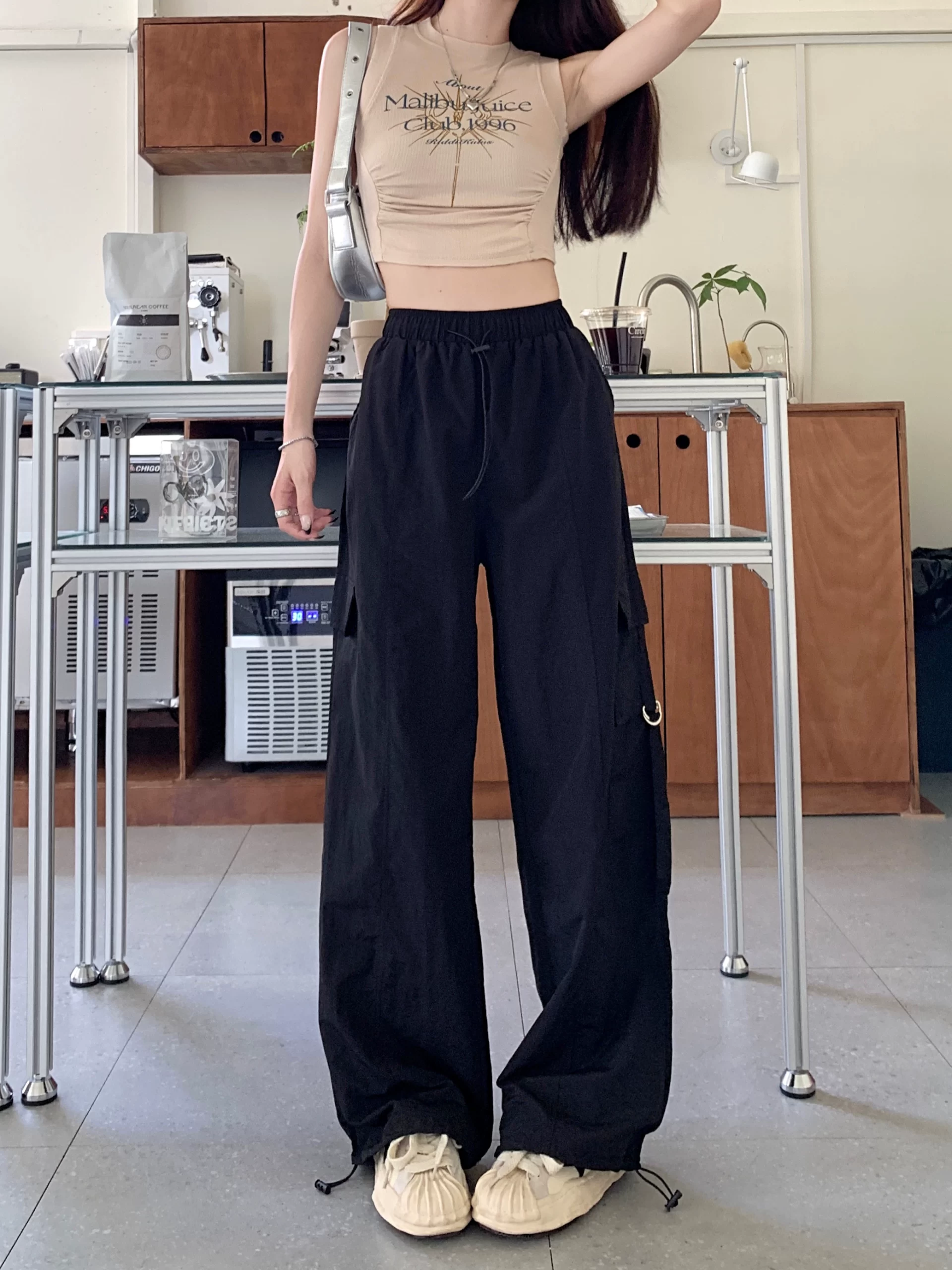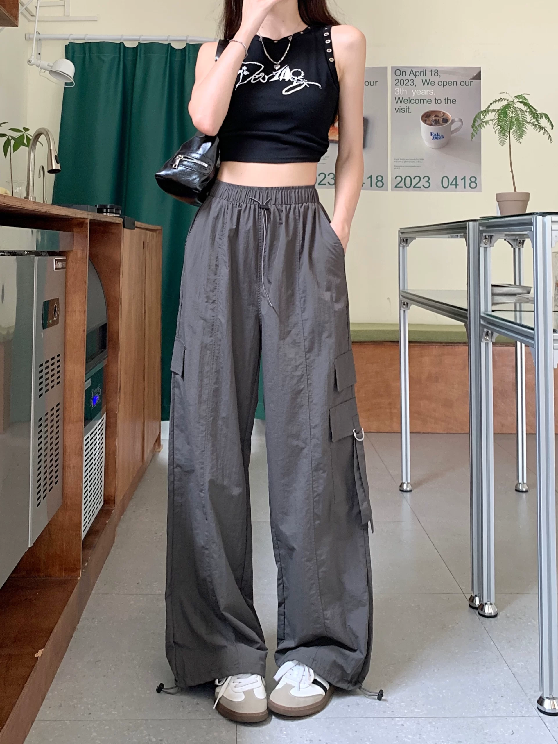 | nameOriginal | Retro casual purple loose high waist floor mopping overalls |