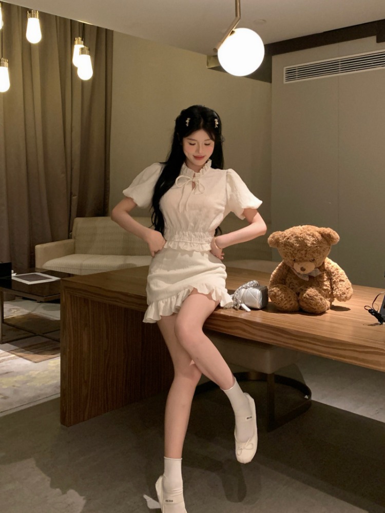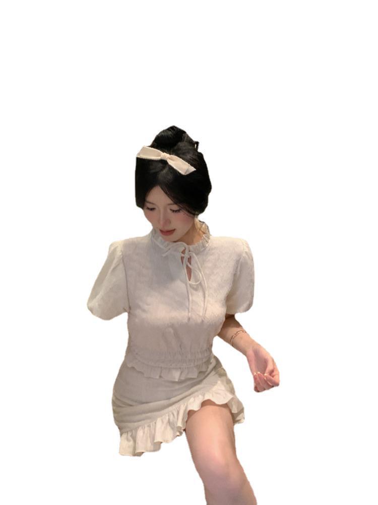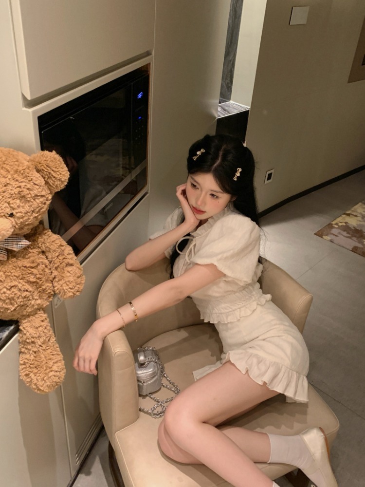 | nameOriginal | Retro Chanel style puff sleeve women's clothing spring new style wooden ear shirt top skirt casual fashion suit |