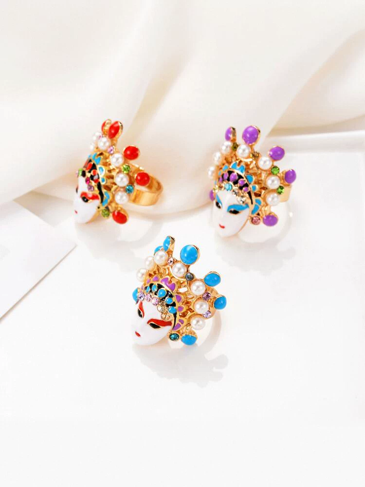 | nameOriginal | Retro Chinese style Daomadan personalized creative ring women's jewelry trendy Peking Opera facial makeup ring ethnic style accessories |