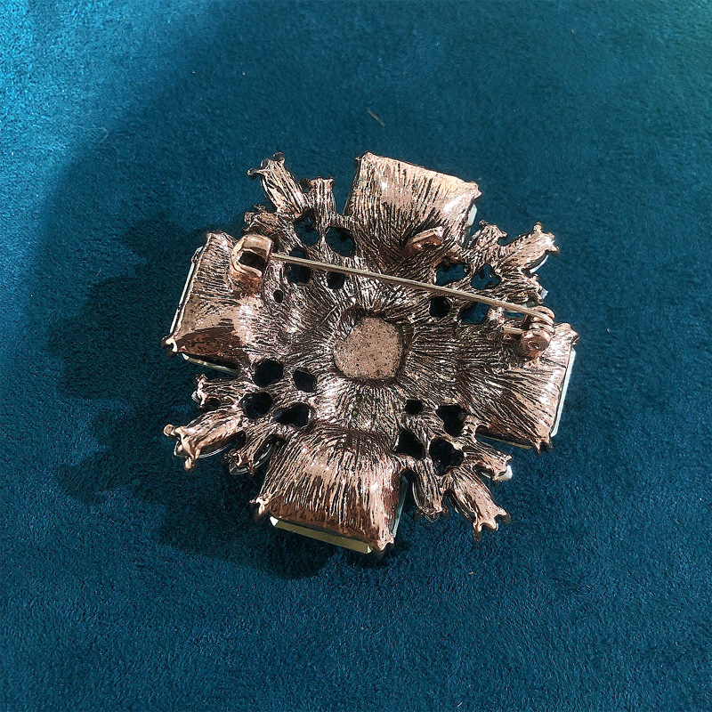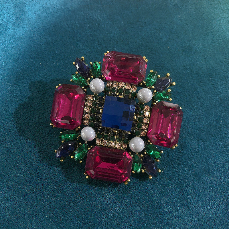 Retro Classic European and American Square Geometric Rhinestone Brooch Fashion Women's Coat Jacket Pin Accessories Corsage