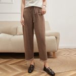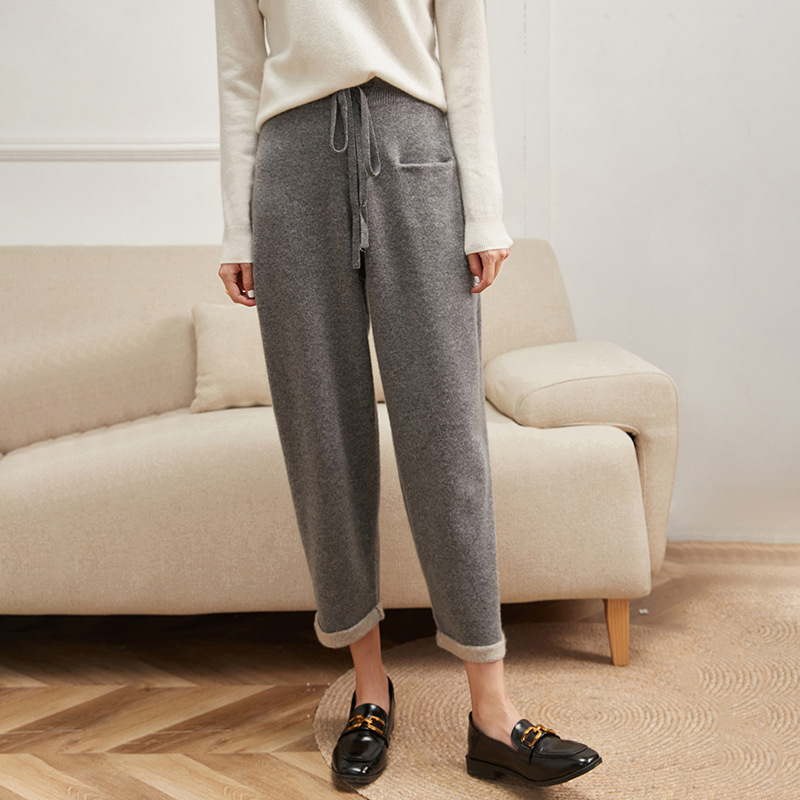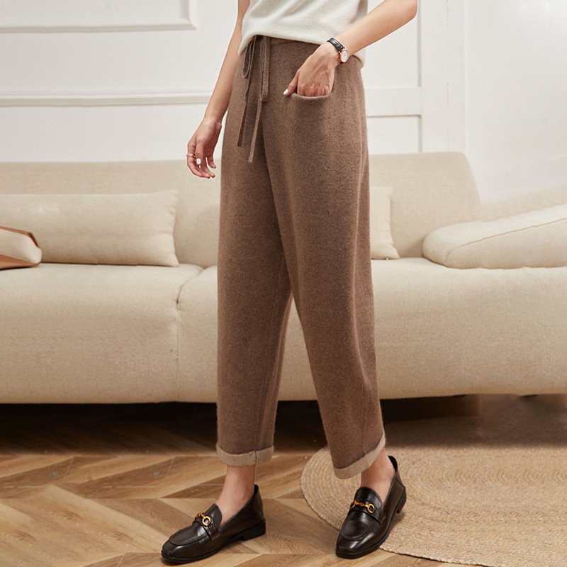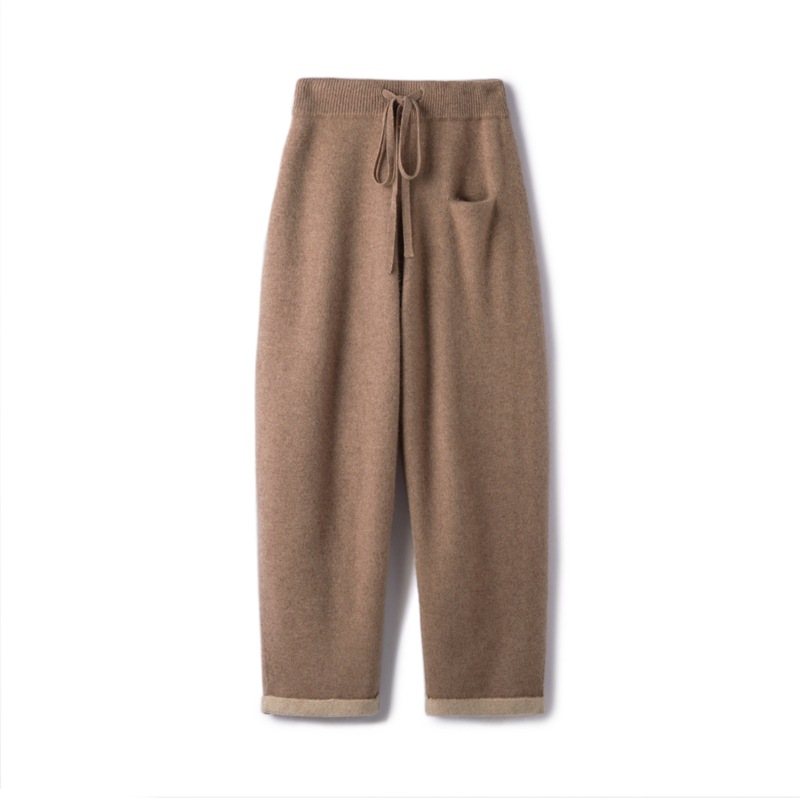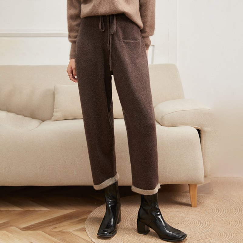 | nameOriginal | Retro color matching small pocket high waist drawstring grandma pants loose casual cashmere new women's knitted cropped pants |
