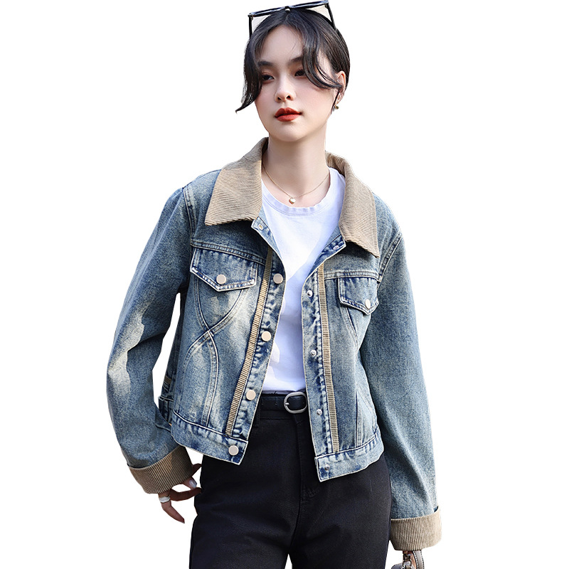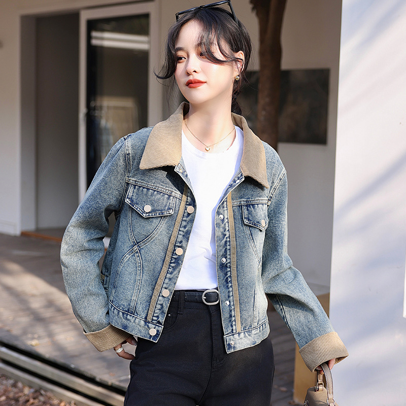 | nameOriginal | Retro contrast color stitching Denim coat for women Spring and Autumn loose design sense niche small short jacket fashionable top |