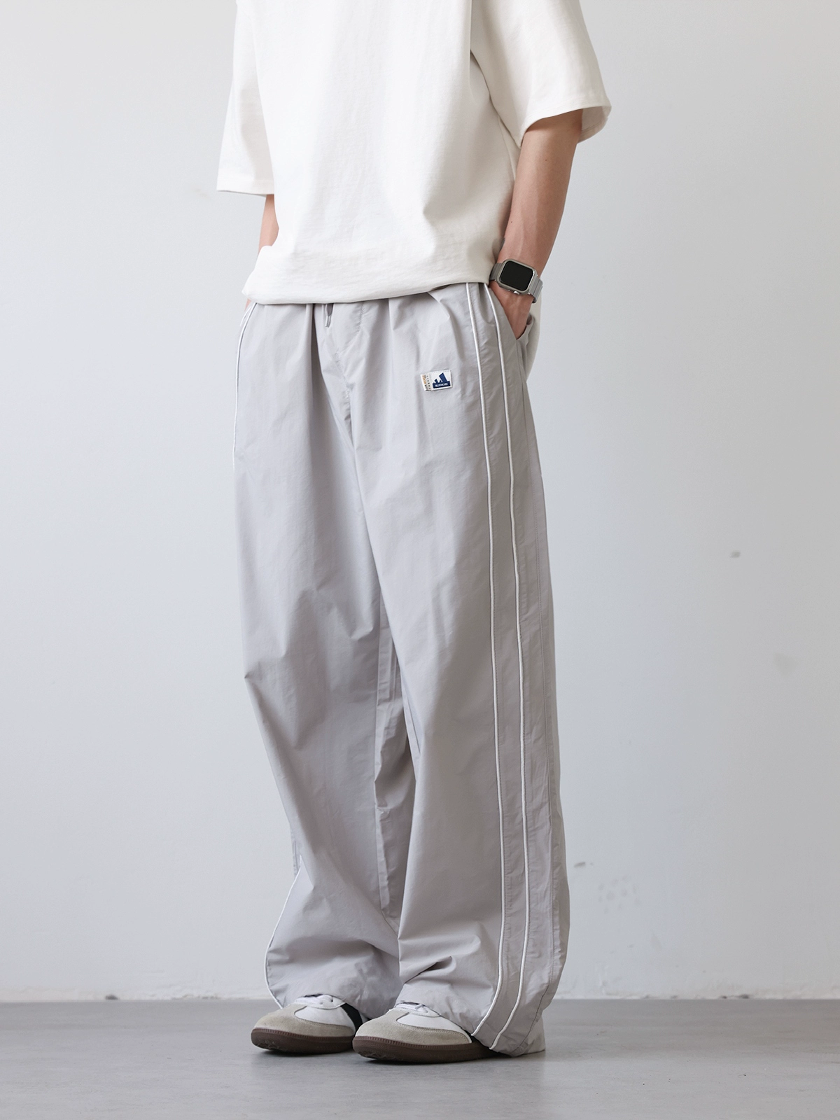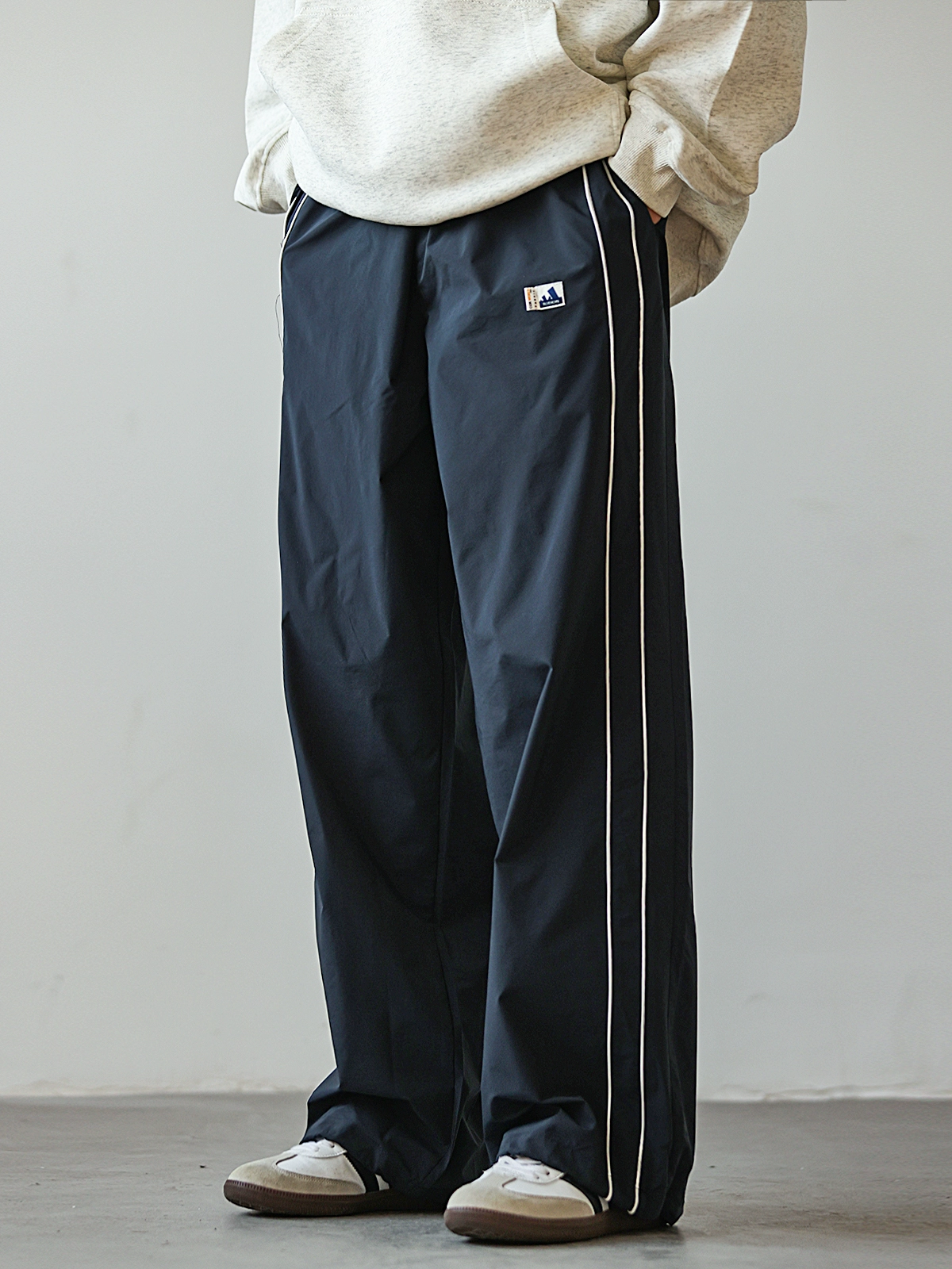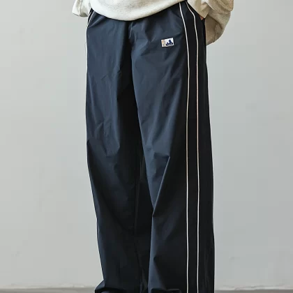 Retro contrasting young students loose their waist casual pants