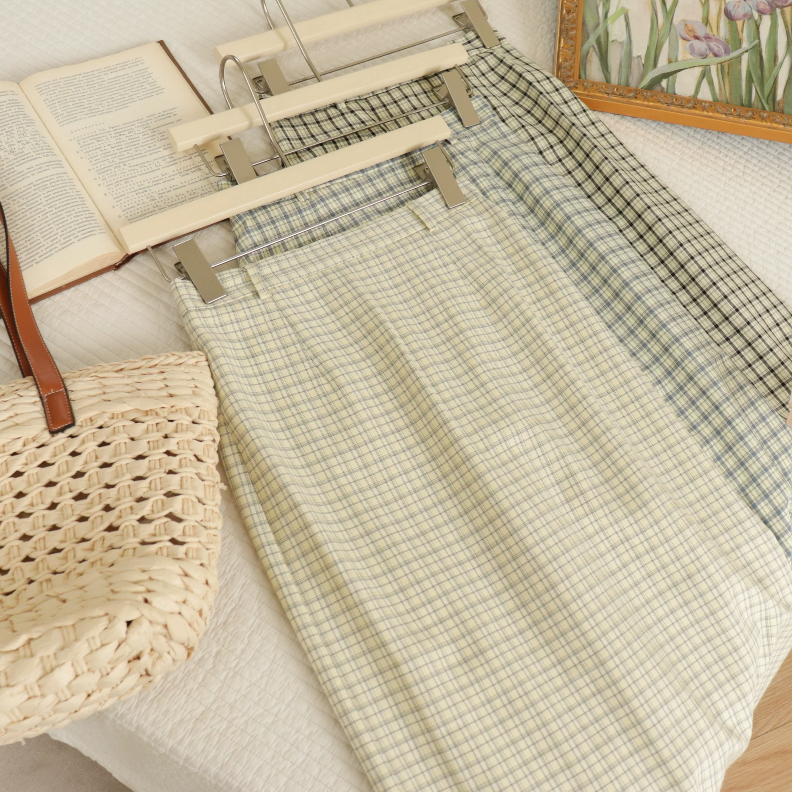 | nameOriginal | Retro contrast plaid summer back slit skirt |