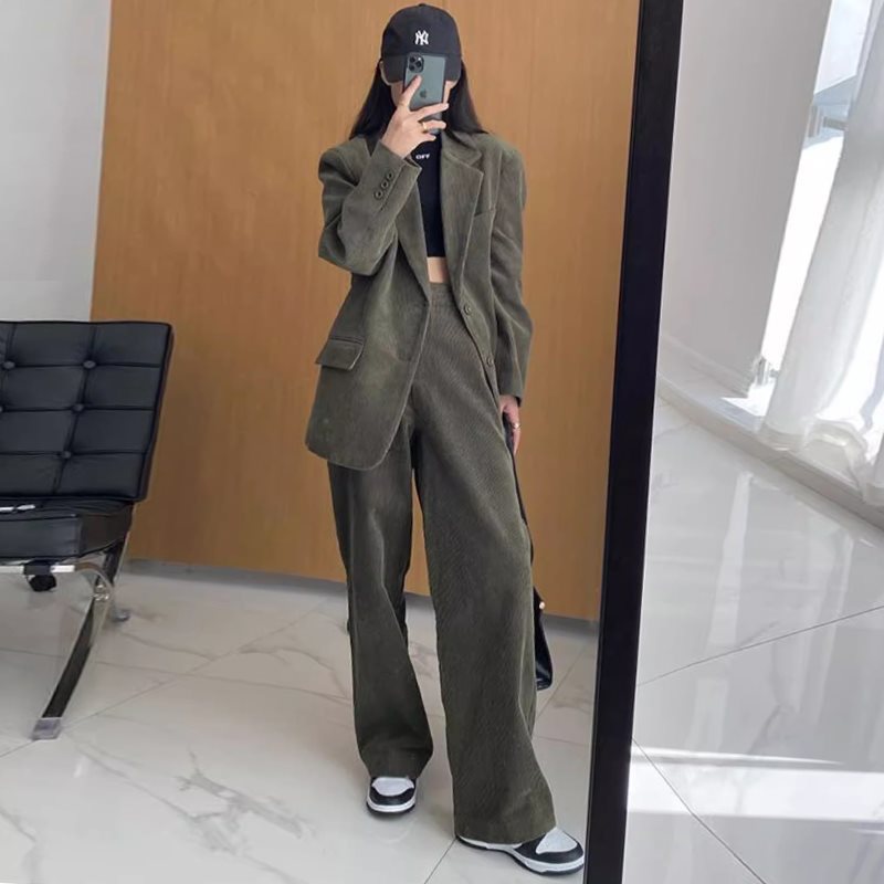 | nameOriginal | Retro Corduroy Suit Jacket Wide Leg Pants Professional Two-Piece Set 2024 Spring and Autumn Fashion Royal Sister Light Mature Wind suit |