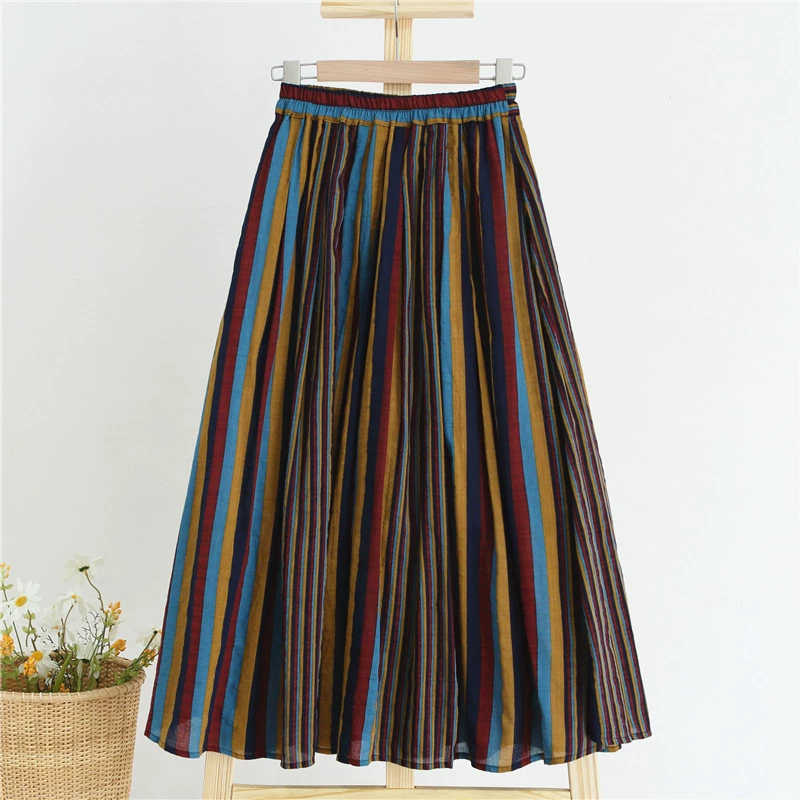 | nameOriginal | Retro cotton and linen yarn-dyed artistic striped soft skirt |
