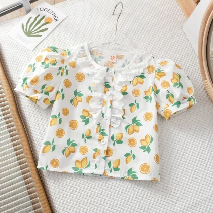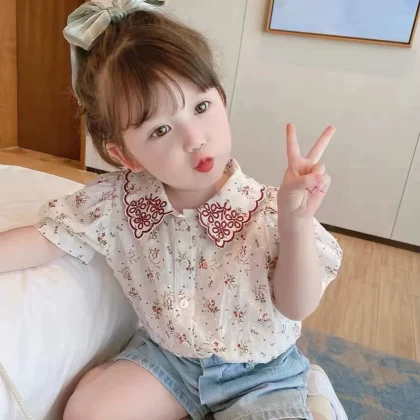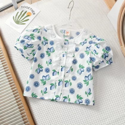| nameOriginal | Retro cotton floral baby short-sleeved doll shirt children's clothing |