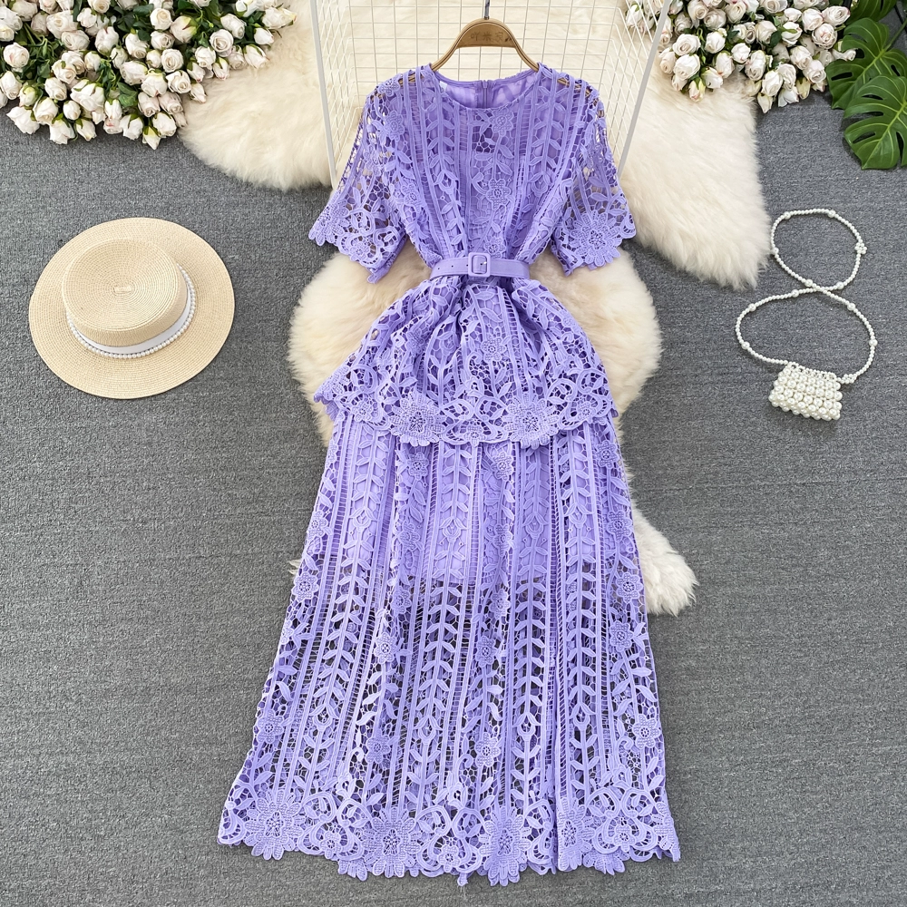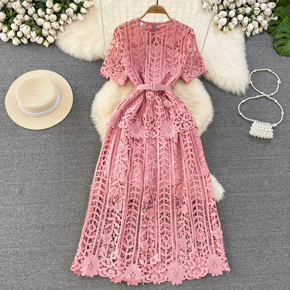 | nameOriginal | Retro crochet hollow lace dress with elegant short sleeves |