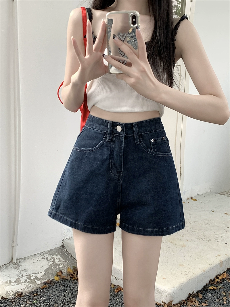 | nameOriginal | Retro dark blue high-waisted A-line wide-leg denim shorts |