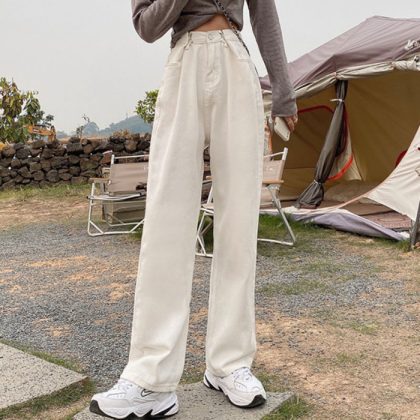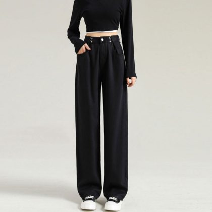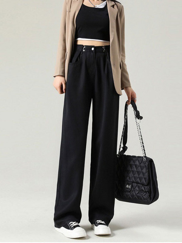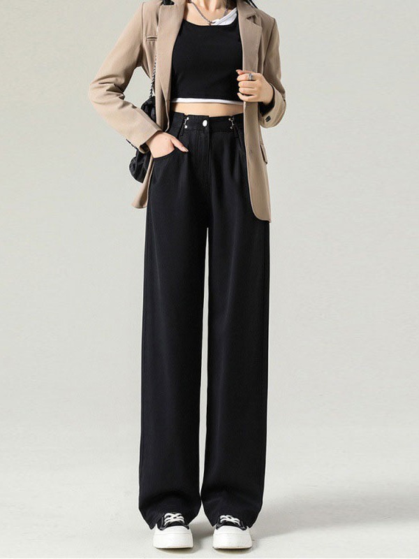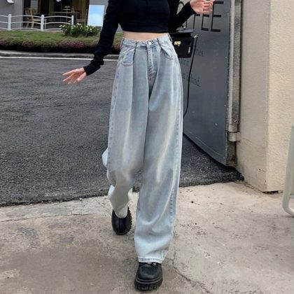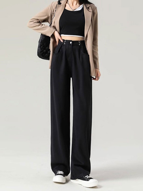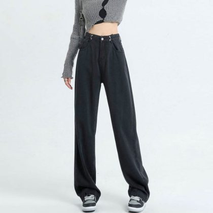 | nameOriginal | Retro Denim wide-leg pants early spring straight jeans women's buckle high waist loose retro mop wide-leg pants |