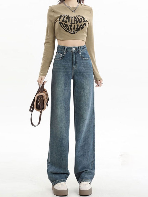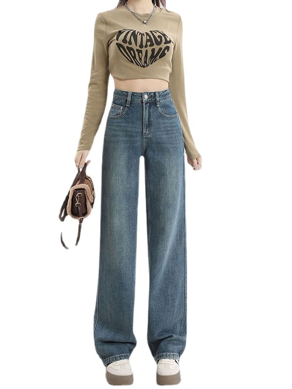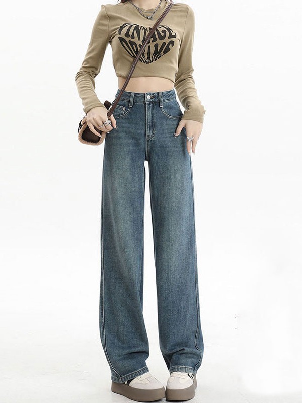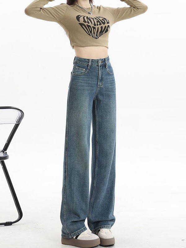 | nameOriginal | Retro Denim wide-leg pants straight jeans women's new retro high waist pear-shaped wide-leg mopping pants |