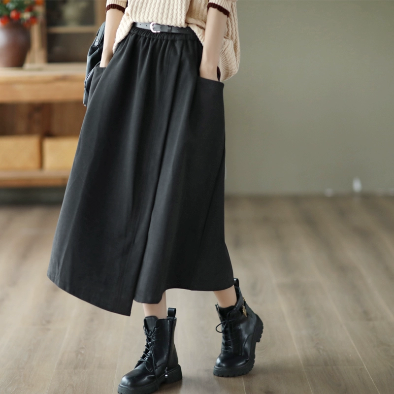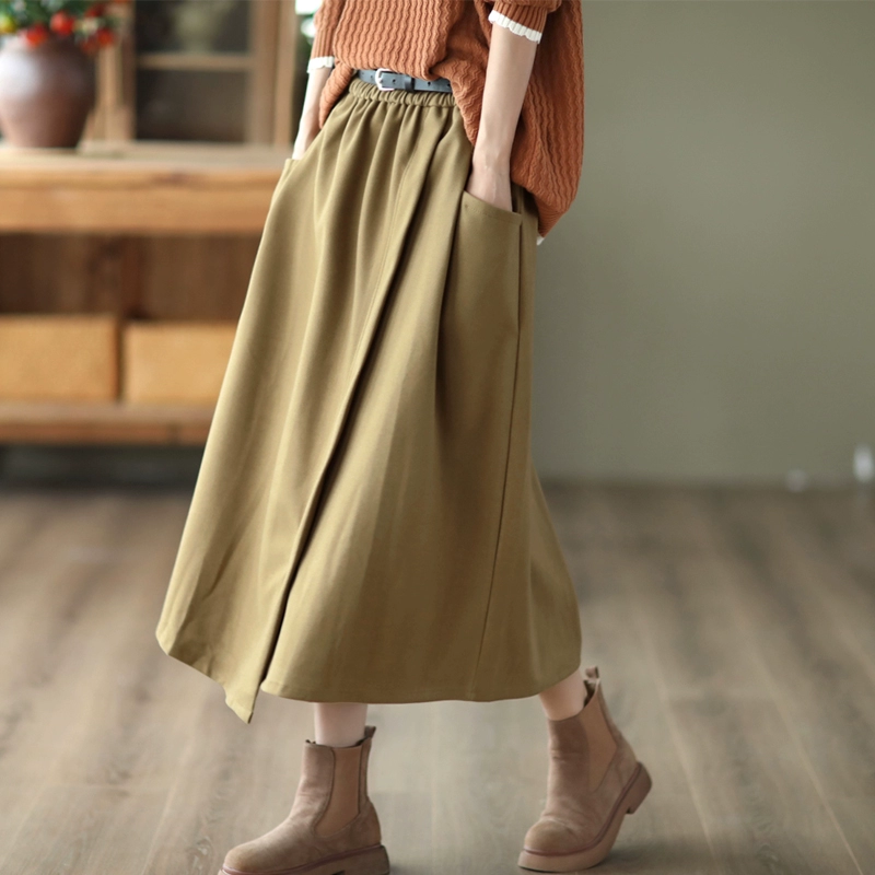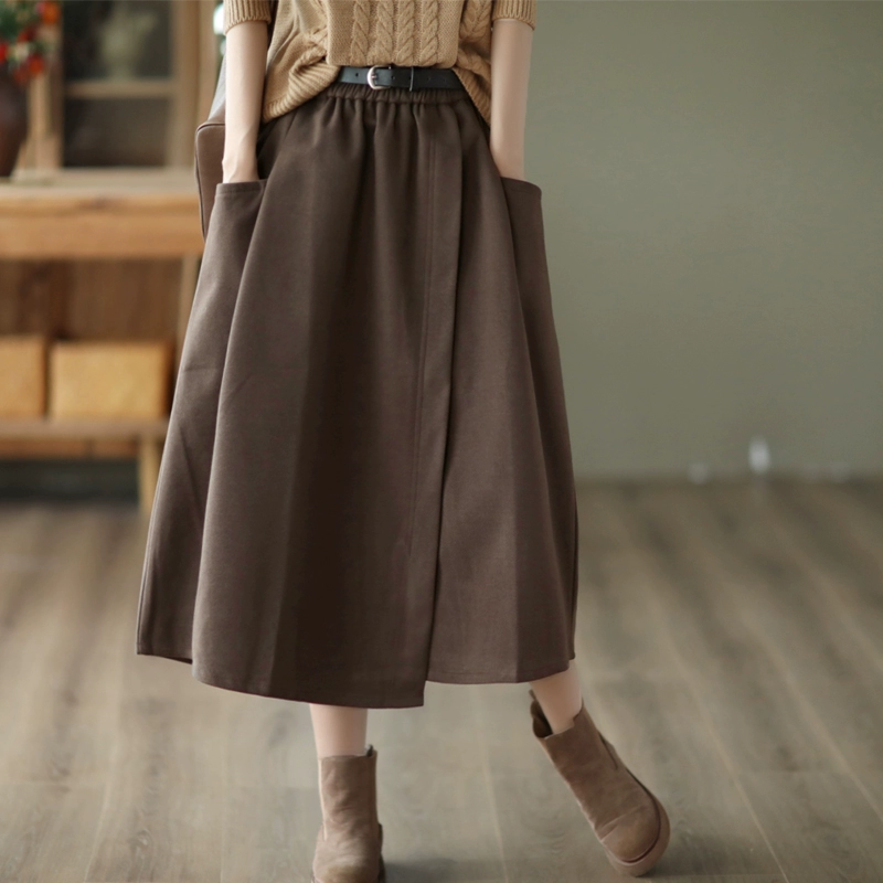 Retro design A-line skirt mid-length Roman cloth