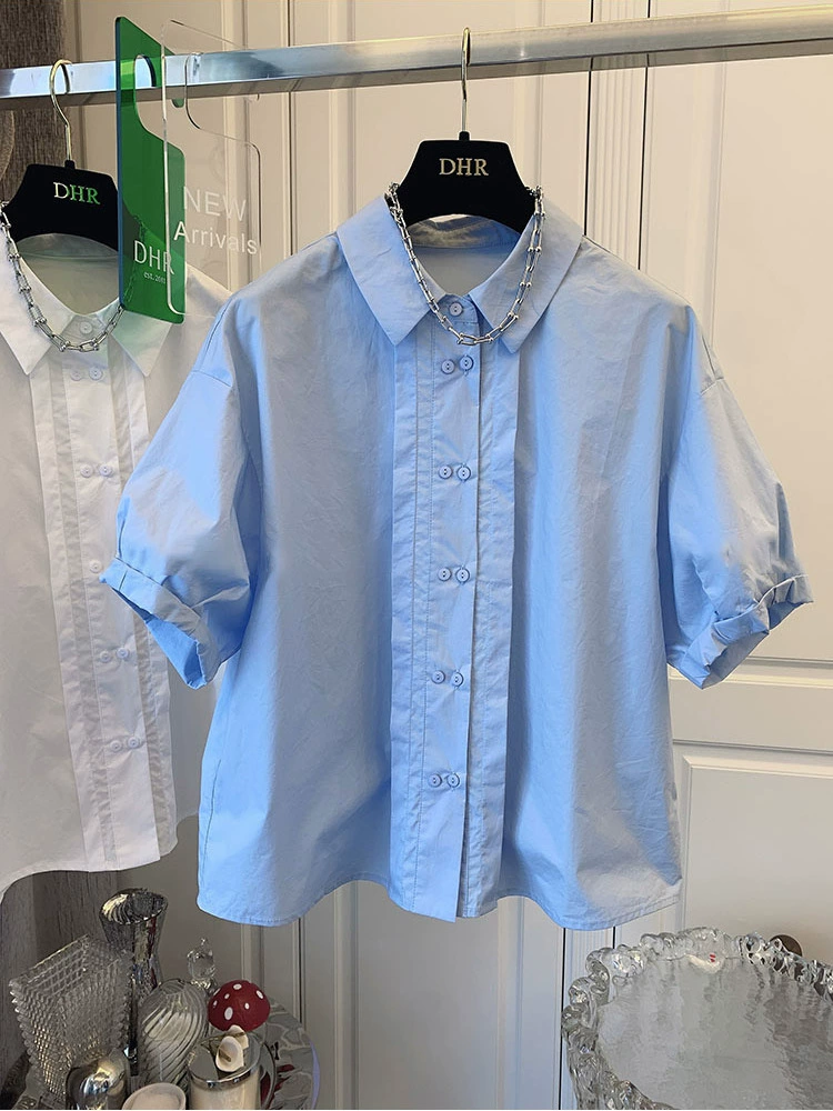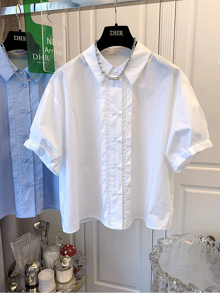 | nameOriginal | Retro double-breasted cotton curled short-sleeved niche art |