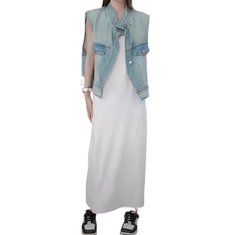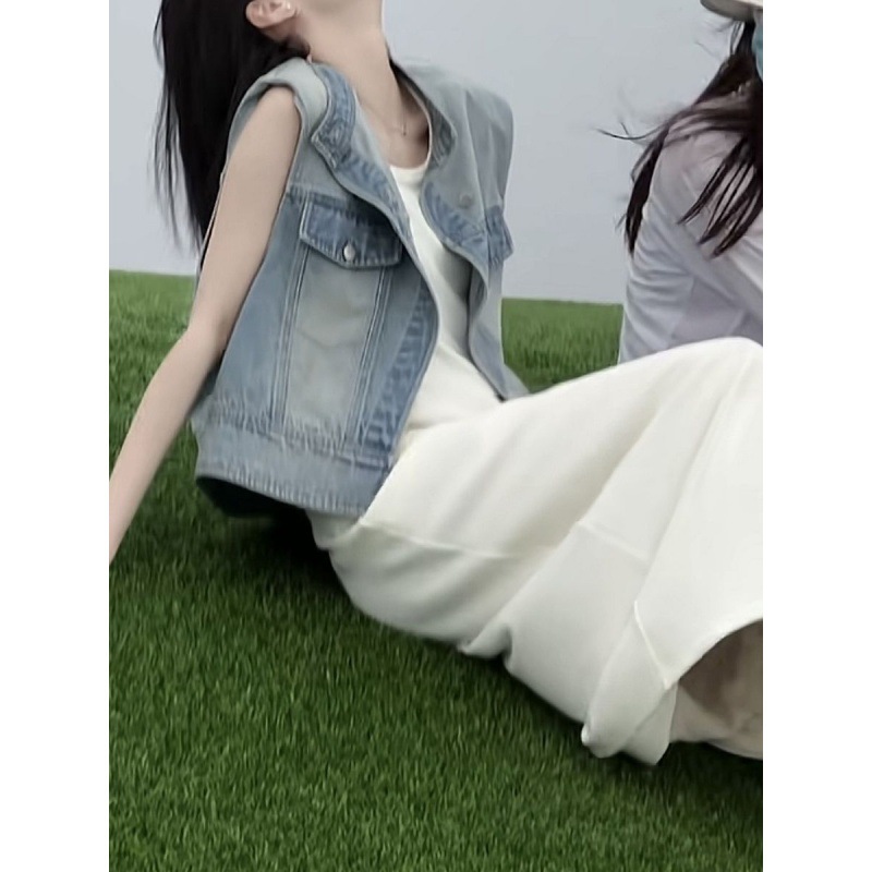 | nameOriginal | Retro elegant vest with dress women's summer wear Korean style loose short Denim vest thin coat suit |