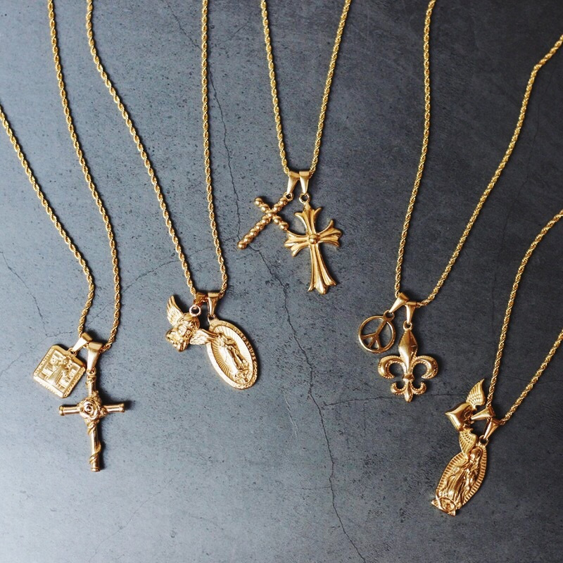 | nameOriginal | Retro European and American Single Pendant Cupid Angel Love Cross Rose Necklace Pendant Accessories Titanium Steel Plated 18K Gold |