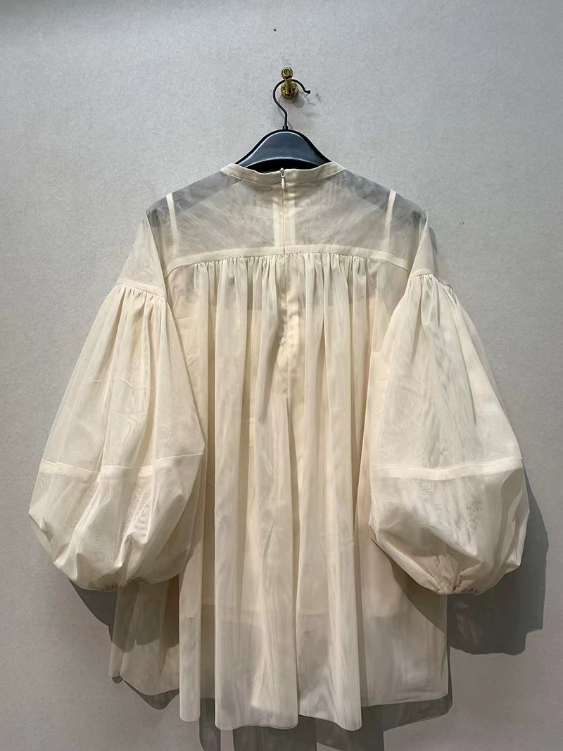 Retro fashionable transparent and loose silhouette net gauze shirt