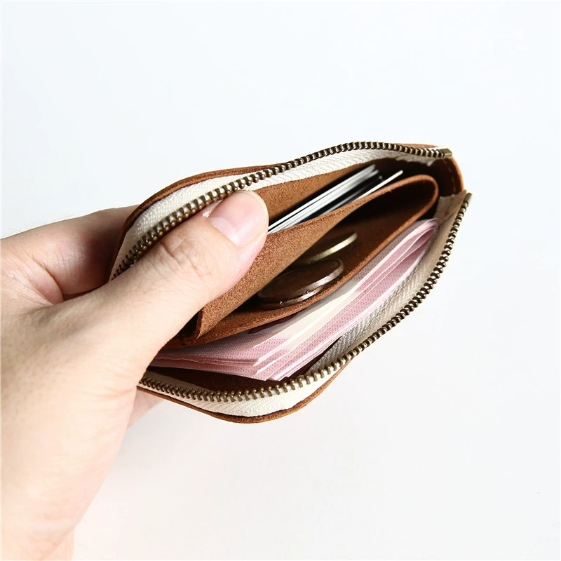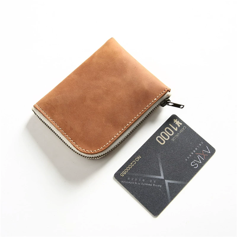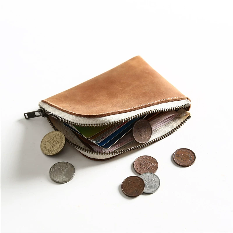 Retro header cowhide men’s mini coin purse ultra -thin leather zipper coin bag short small wallet card woman