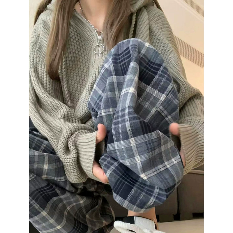 | nameOriginal | Retro floor-length autumn and winter thickened sports casual plaid pants |