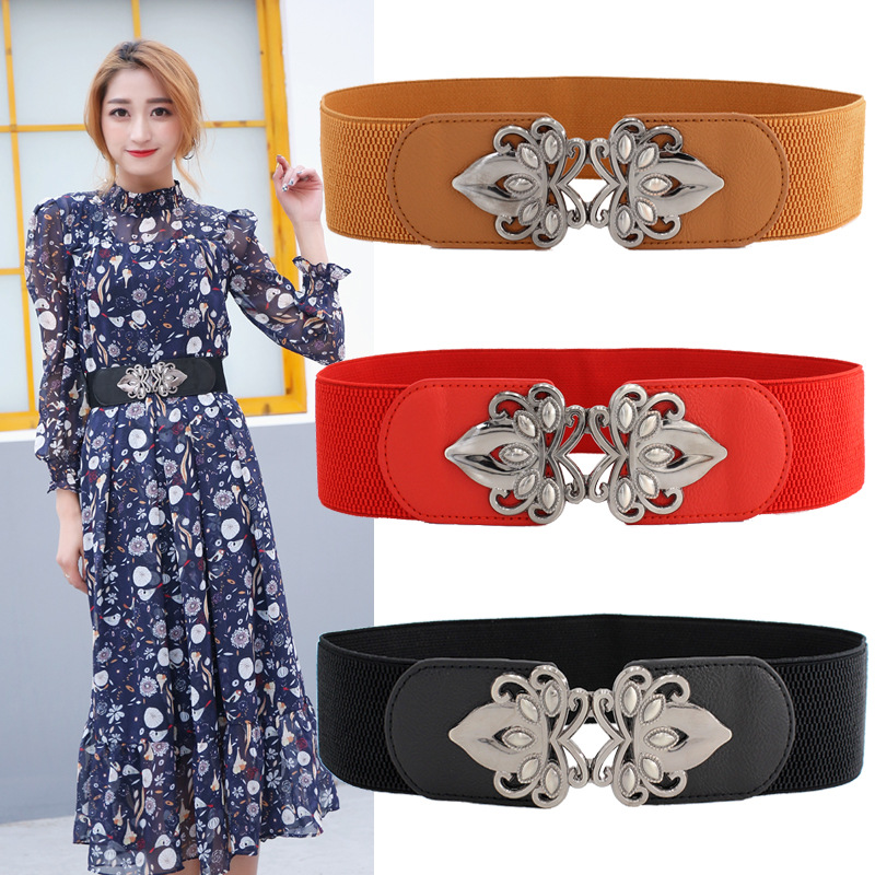 | nameOriginal | Retro floral buckle belt all-match dress decorative tight waist elastic wide belt Women's elastic waist seal one-piece delivery |