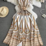 | nameOriginal | Retro flying sleeve single-breasted a-line print dress |