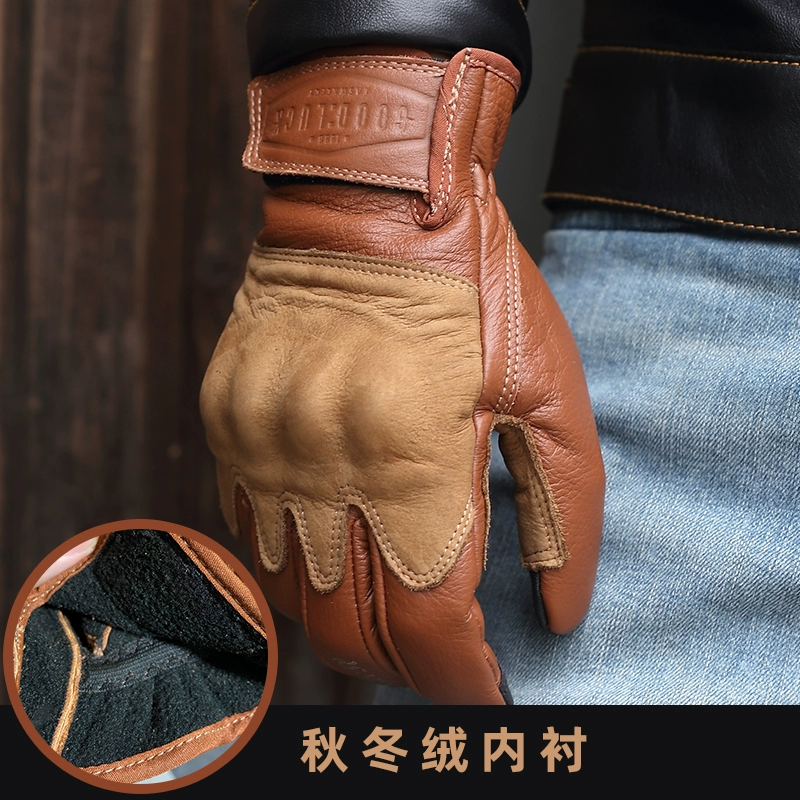 | nameOriginal | Retro four-season cowhide anti-fall black brown cycling gloves |