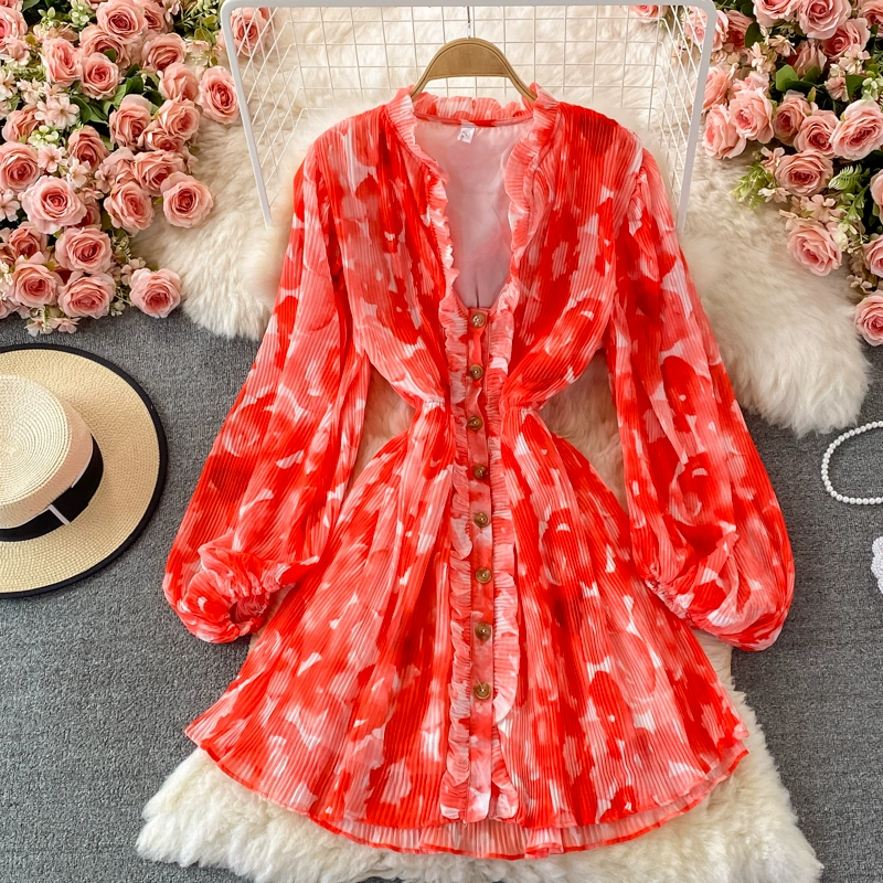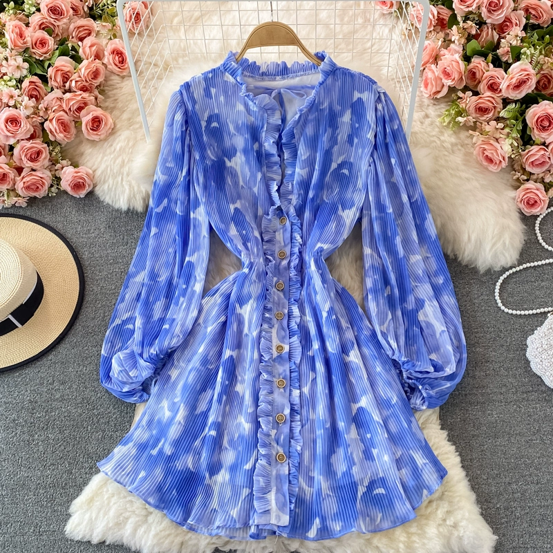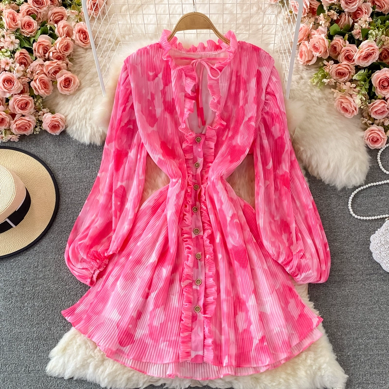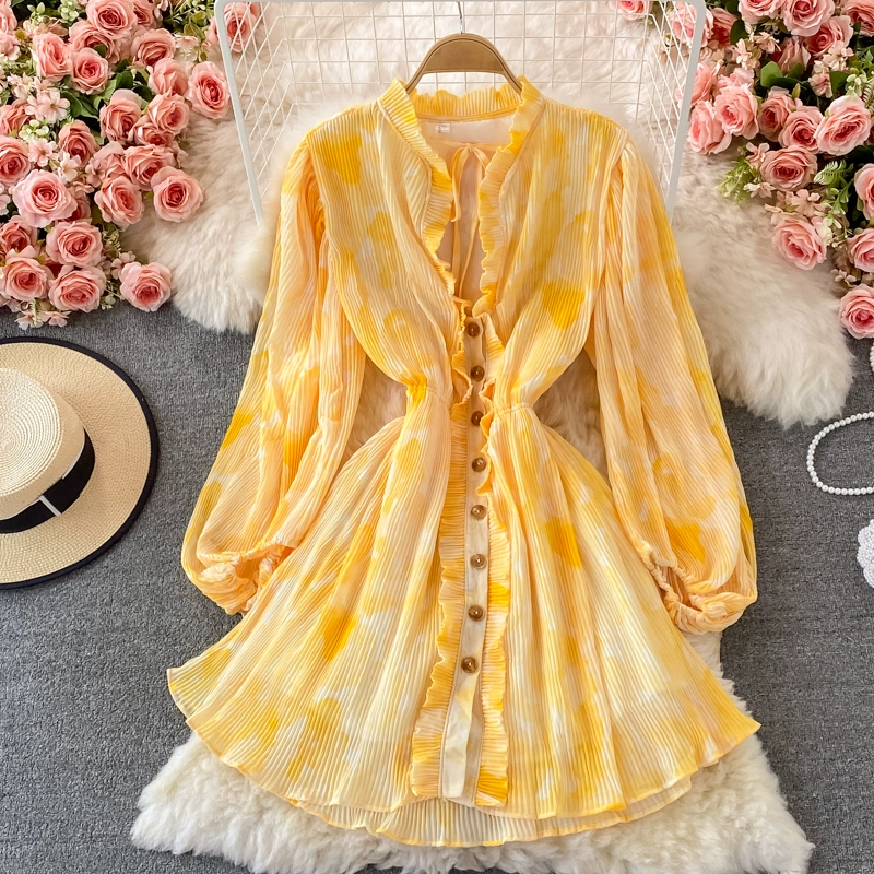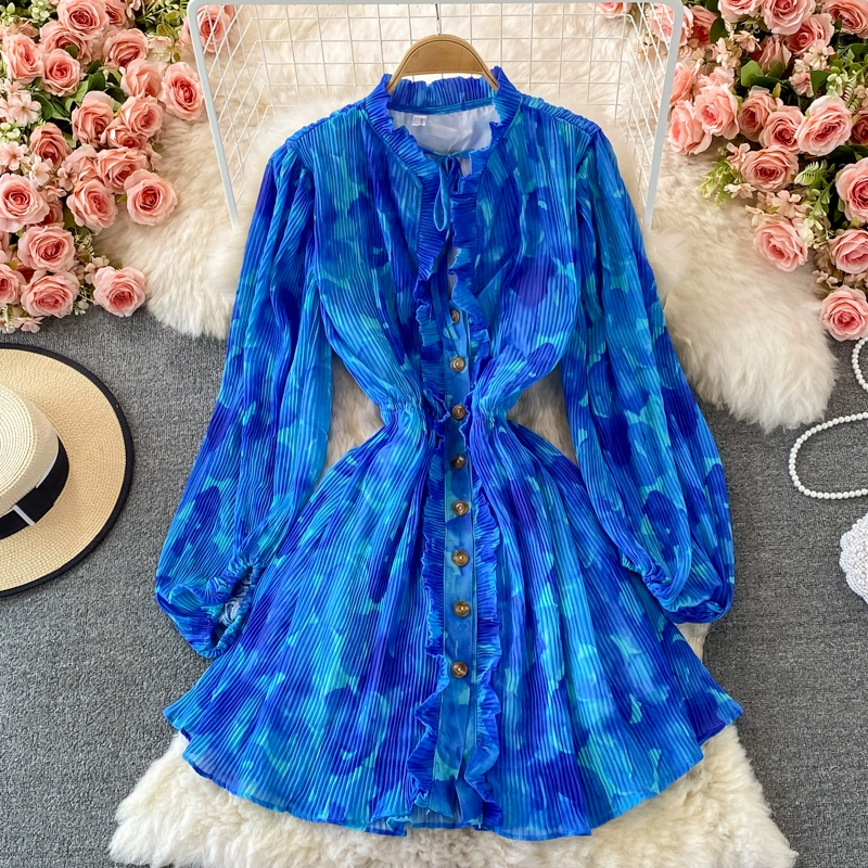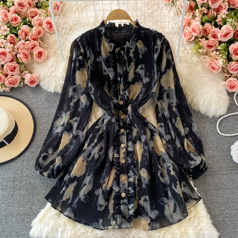 | nameOriginal | Retro fungus-trimmed stand-collar tie-dye long-sleeved dress |