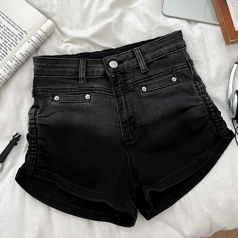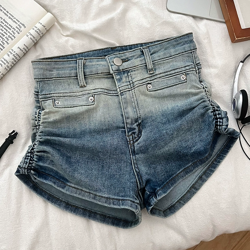 | nameOriginal | Retro gradient high waist pleated denim shorts drawstring |