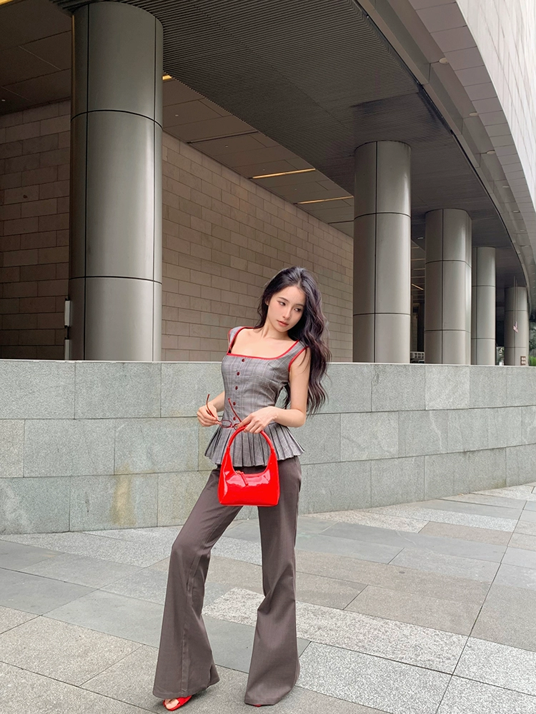 | nameOriginal | Retro gray plaid slim fit sleeveless camisole |