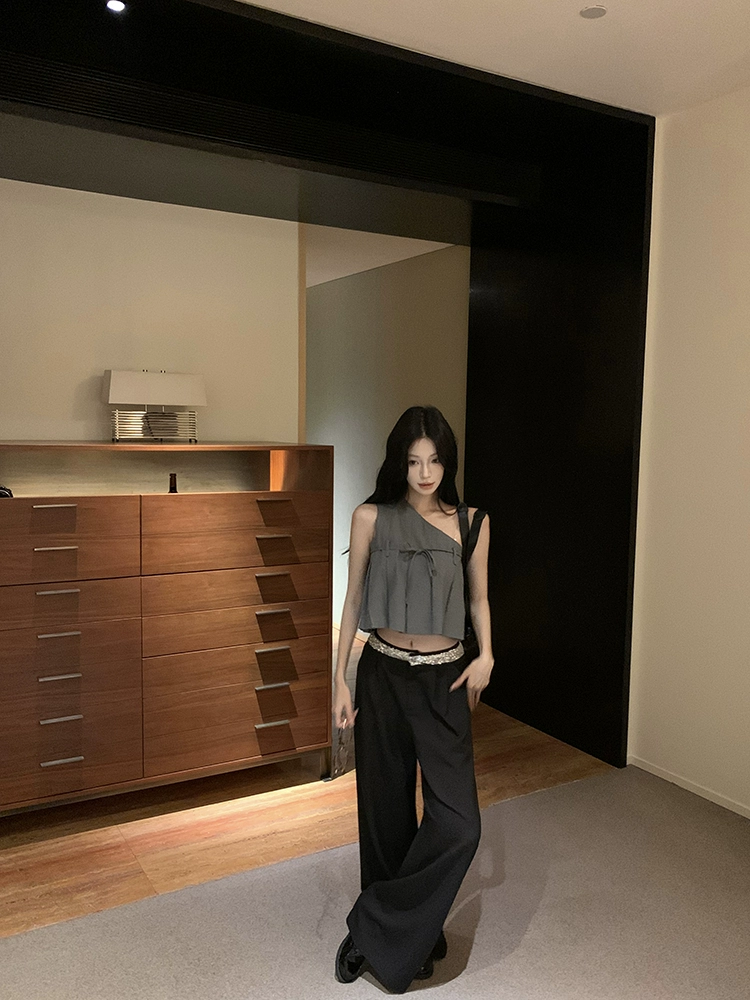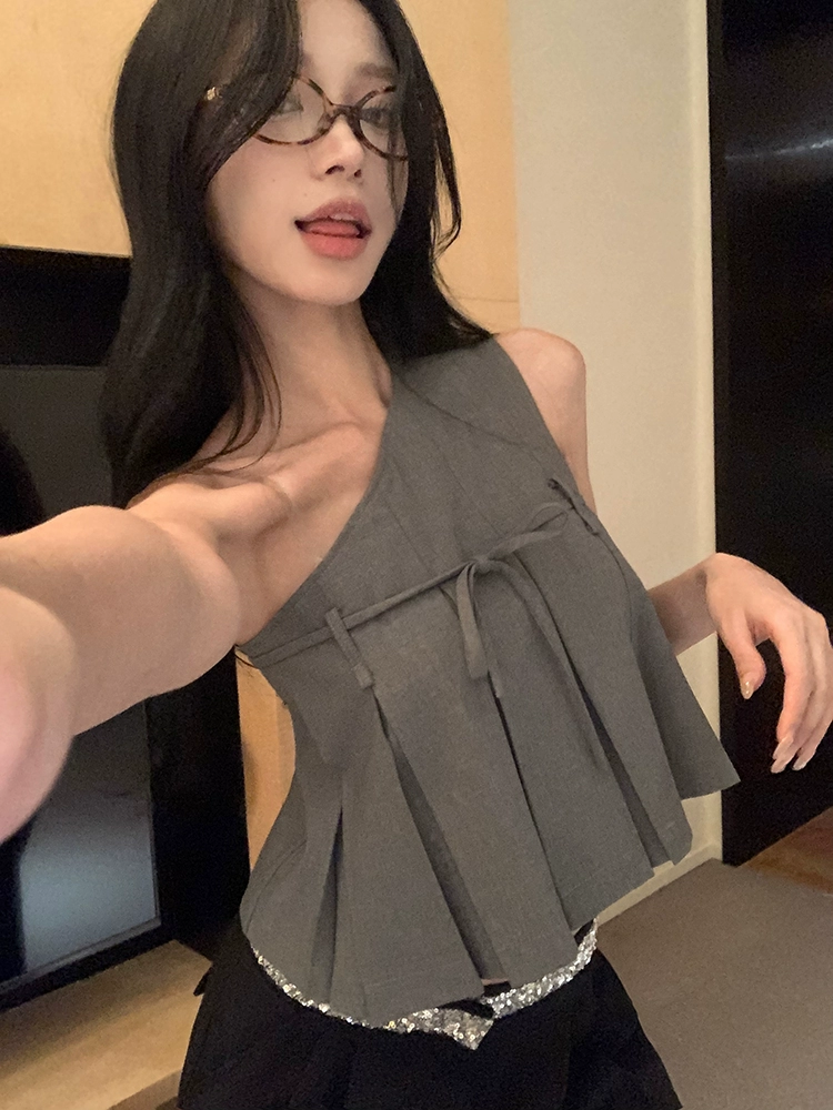 | nameOriginal | Retro gray sloping shoulder irregular sleeveless camisole |