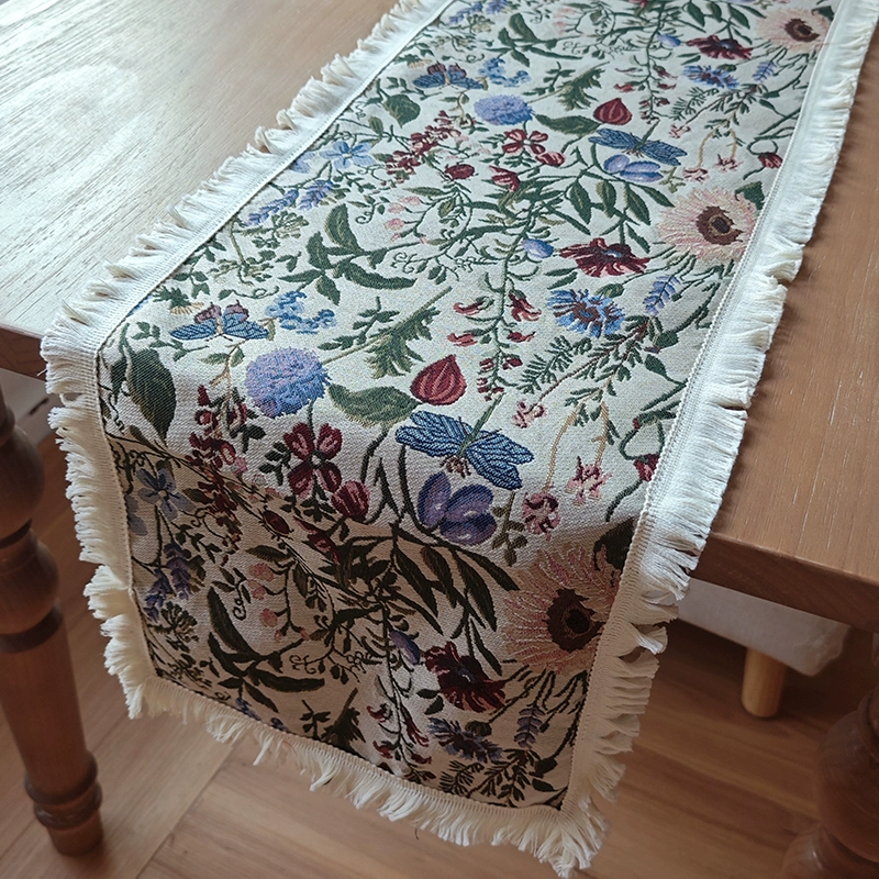 | nameOriginal | Retro green flower table flag red bohemian sideboard flag fabric coffee table TV cabinet long tail towel |
