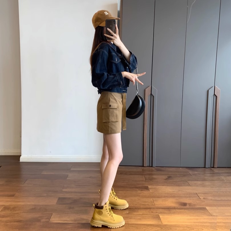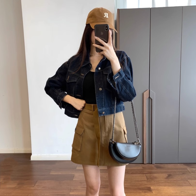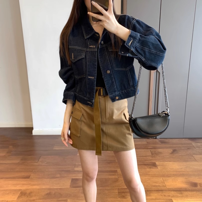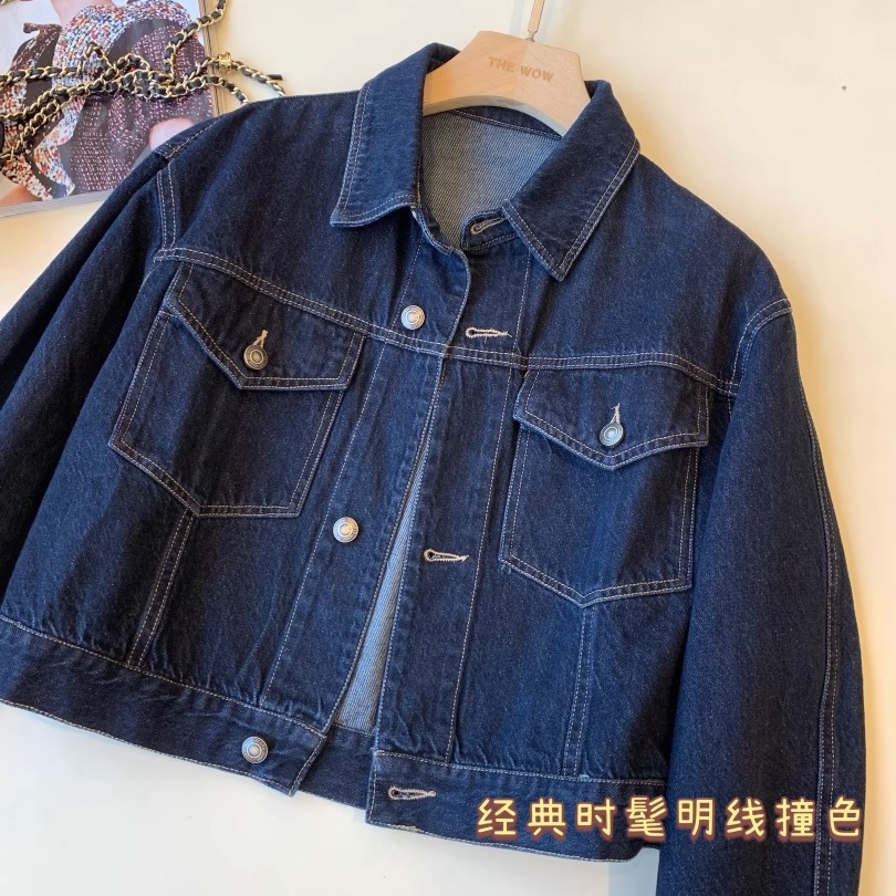 | nameOriginal | Retro handsome fashionable Bright Line contrast color sizing craft casual loose short Denim coat female Net red same style |