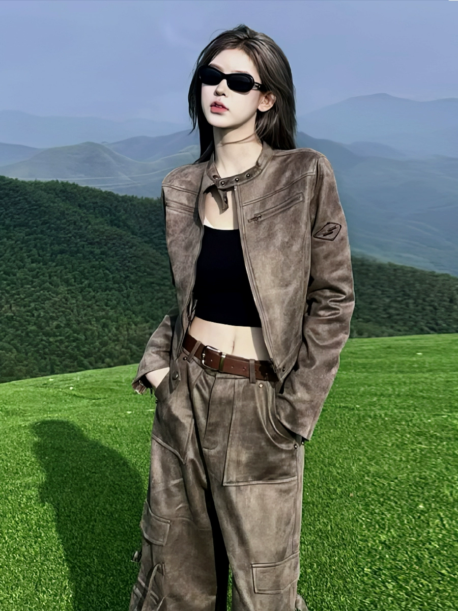 | nameOriginal | Retro high-end hot girl loose short motorcycle suit |