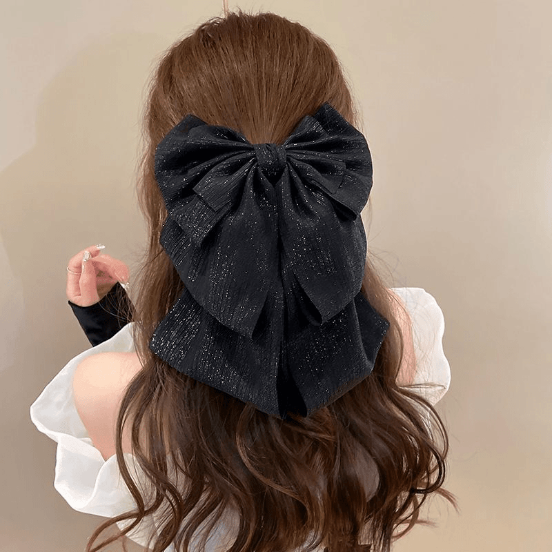 Retro tall ponytail grab the face to show the face small flowing ribbon