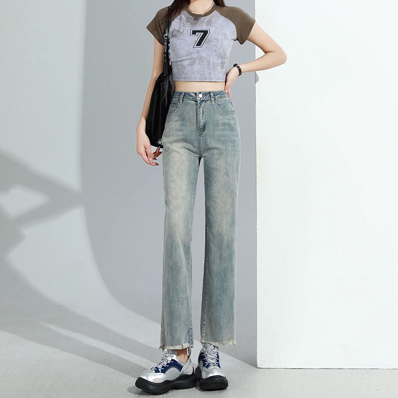 Retro high waist 2024 new cropped jeans