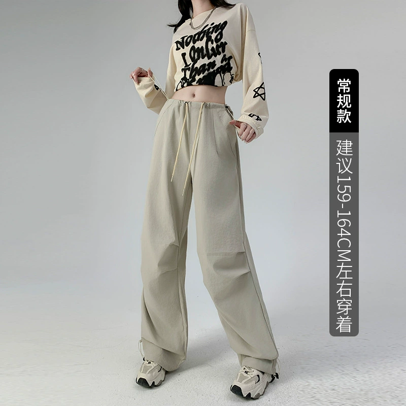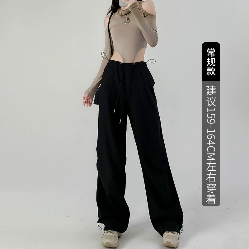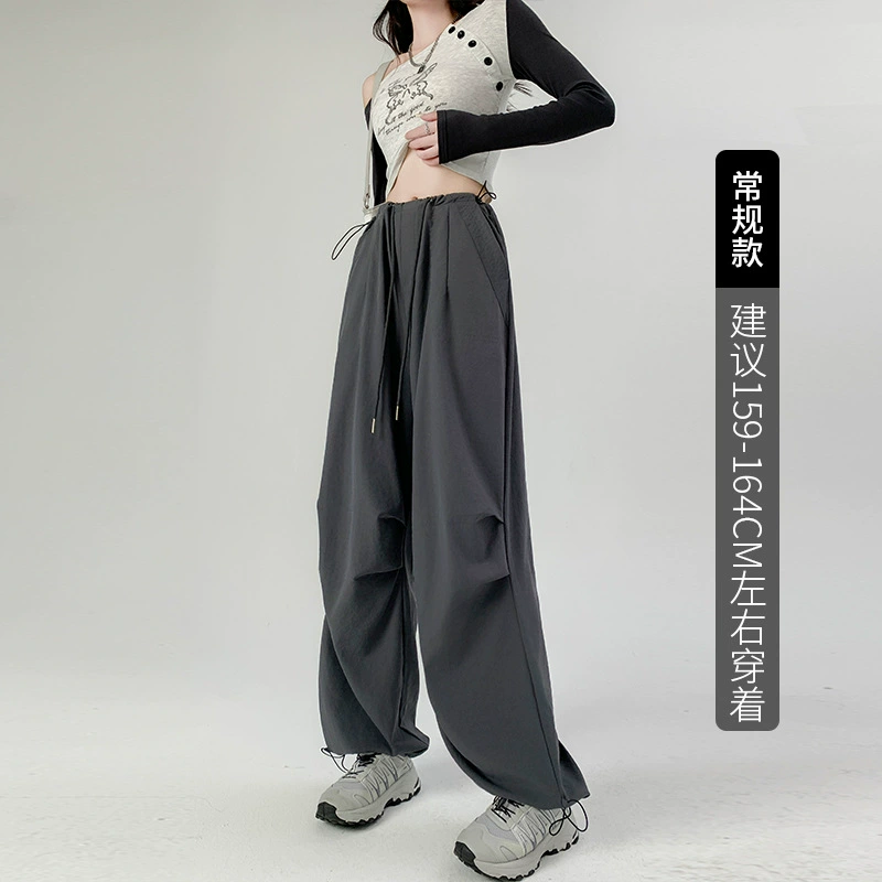 Retro high-waist drawstring loose leggings sweatpants overalls