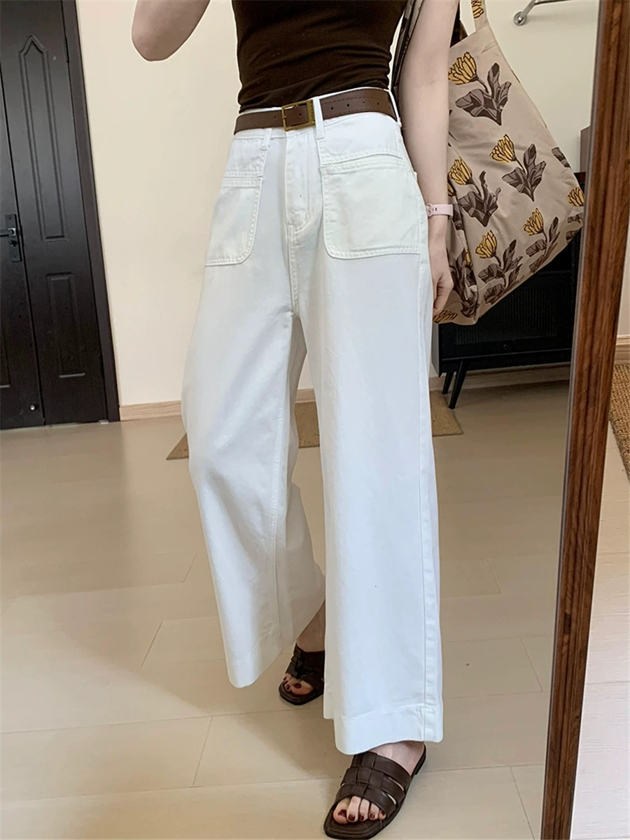 | nameOriginal | Retro high-waist pocket loose ninth casual jeans |