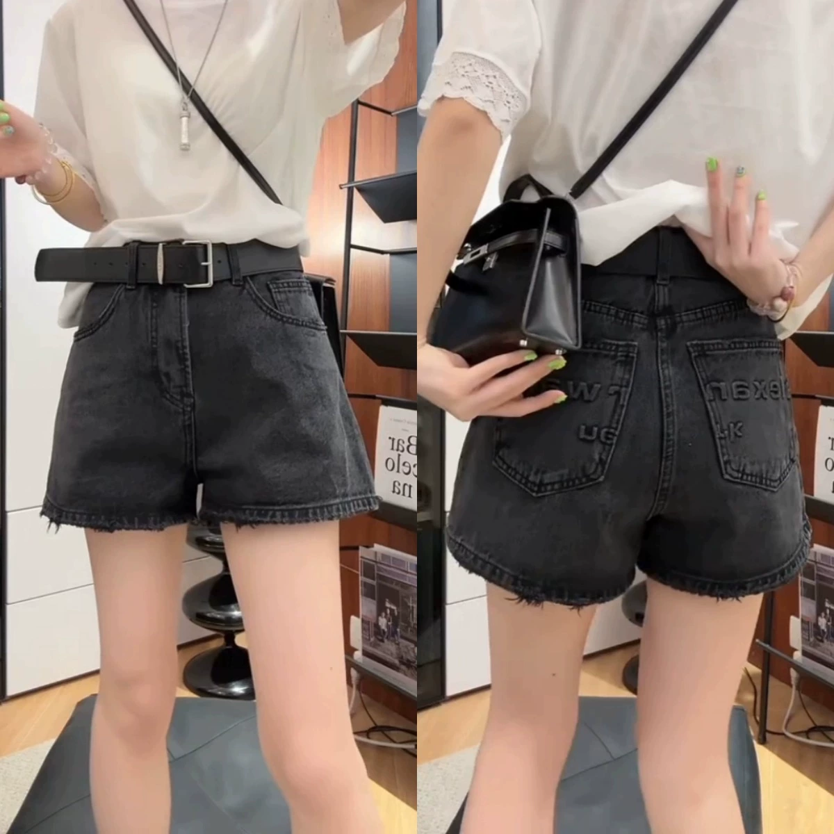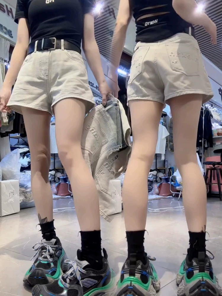 Retro high waist slimming versatile wide leg denim shorts