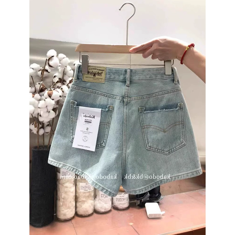 Retro high waist women's summer straight a-line denim shorts