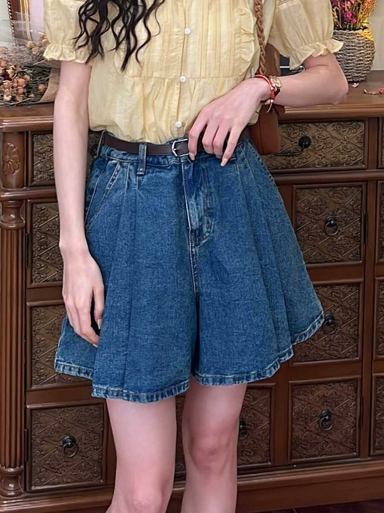 | nameOriginal | Retro high-waisted wide-leg half-length pleated denim shorts |
