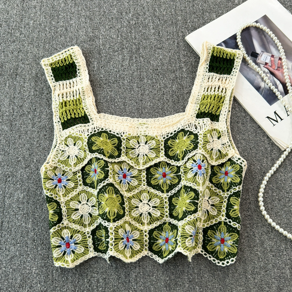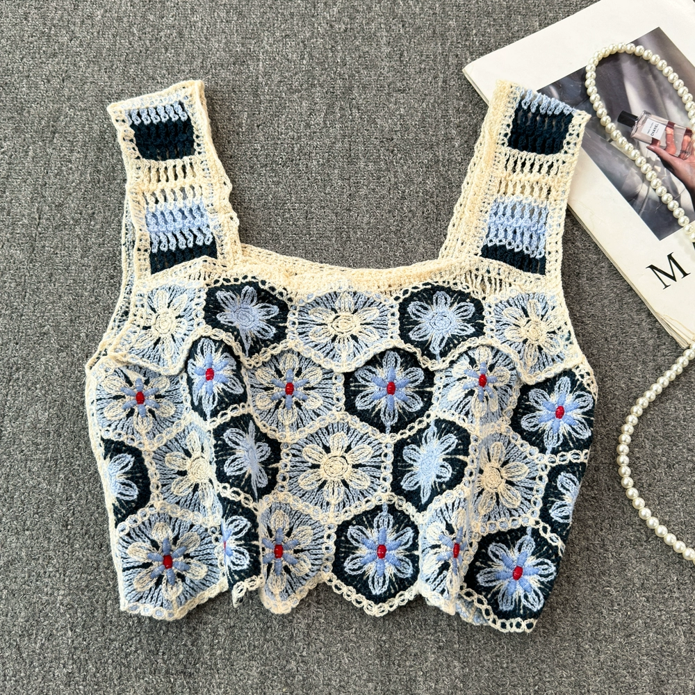 | nameOriginal | Retro hollow crochet short style navel-baring thin suspender top women's summer dress new slim outer wear tube top trendy |