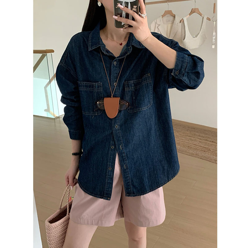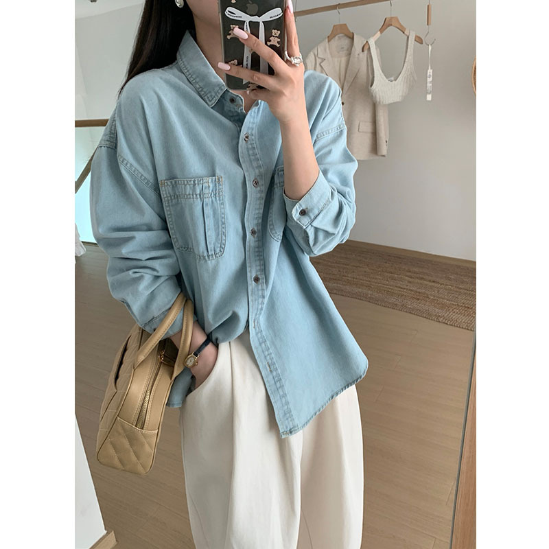 | nameOriginal | Retro Hong Kong style casual Denim coat for women Spring New Korean style loose thin slimming versatile long sleeve shirt |
